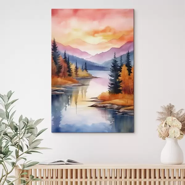 Obraz Jesenná krajina pri jazere s jasnou oblohou Nr. s46155