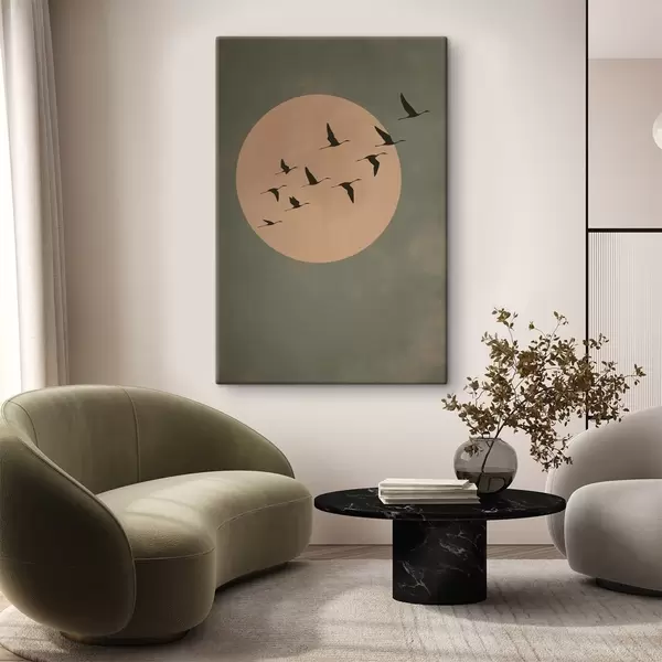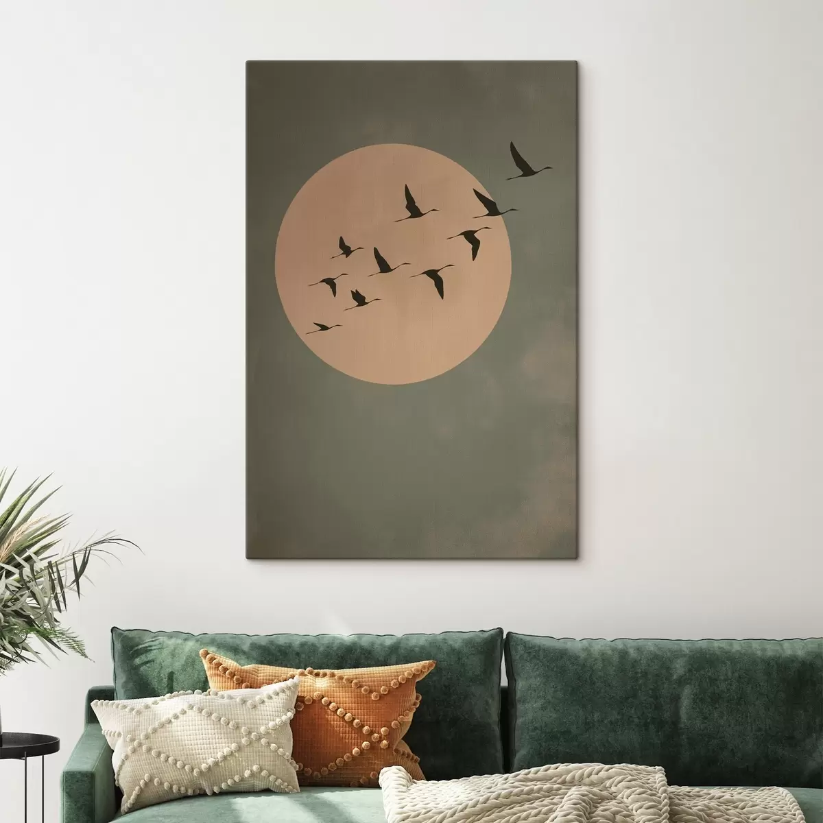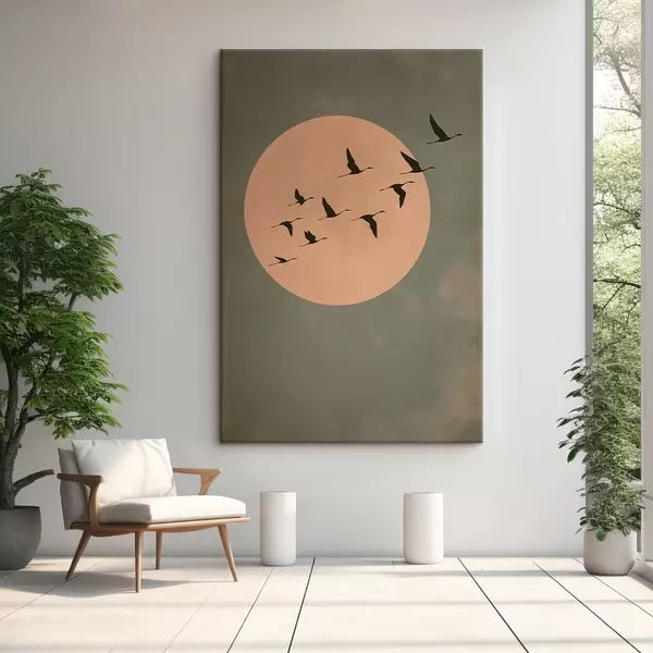 Obraz Kŕdeľ vtákov letiaci proti veľkému teplému mesiacu Nr. s46162