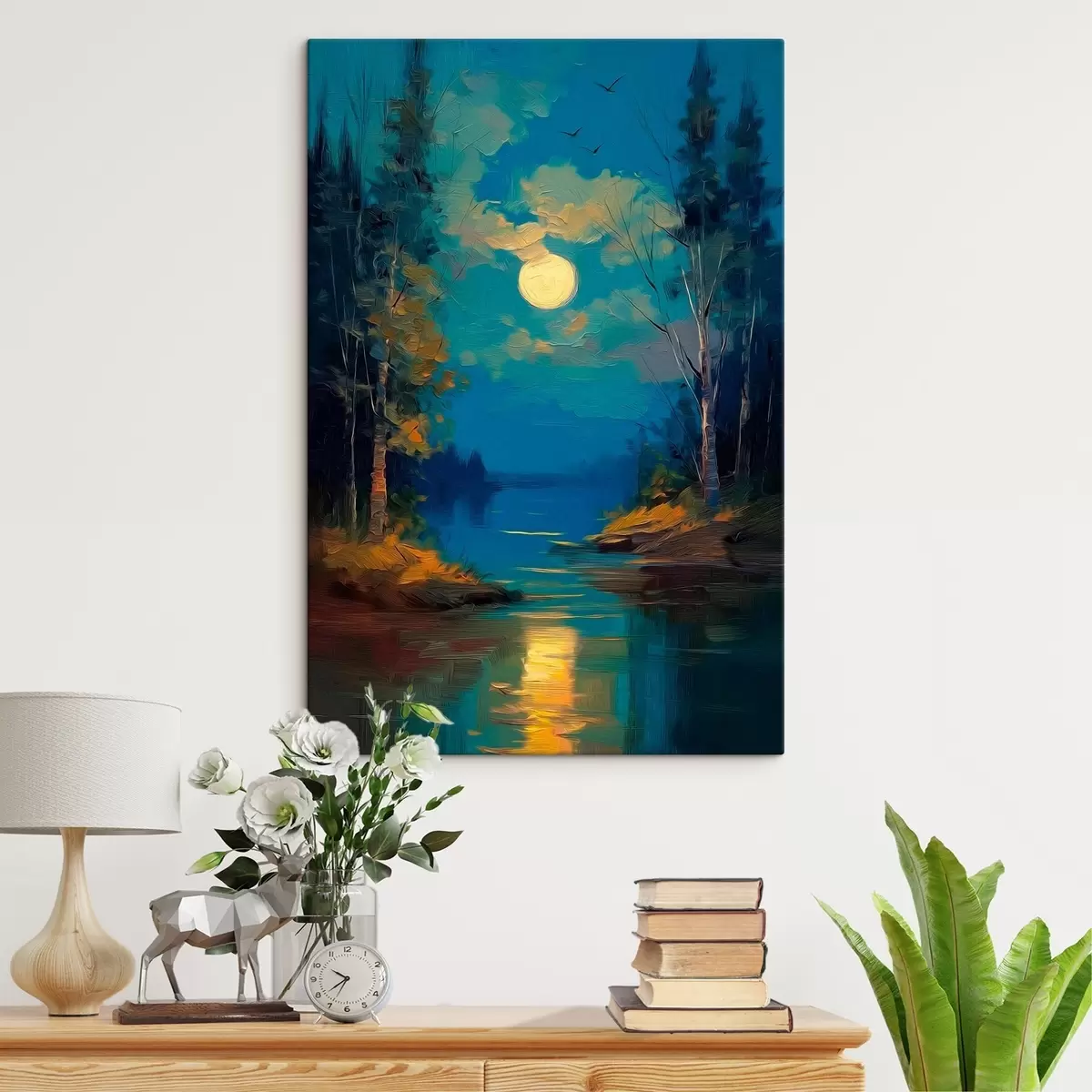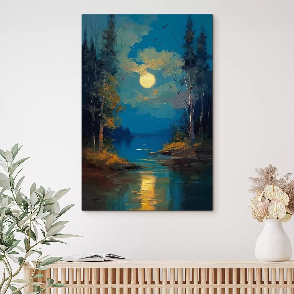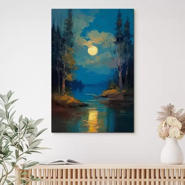 Obraz Mesiac nad pokojnou riekou medzi borovicami Nr. s46164