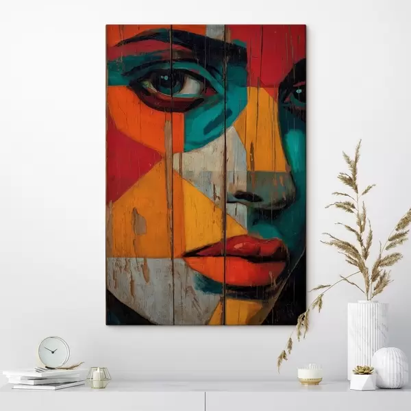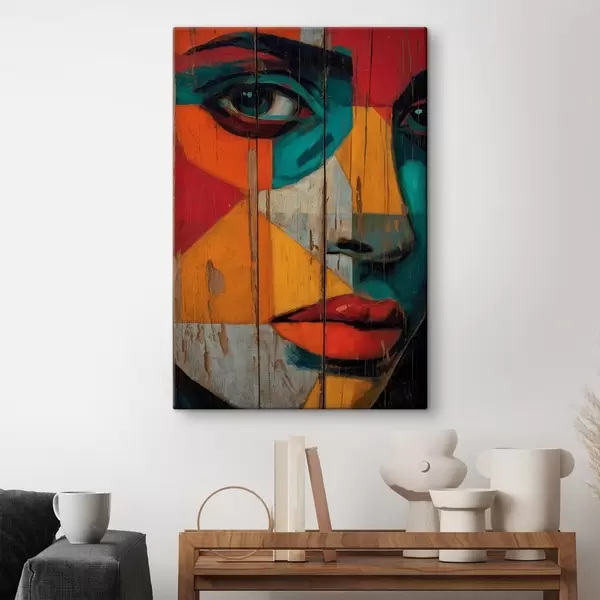 Obraz Jasný geometrický portrét tváre na drevených doskách Nr. s46165