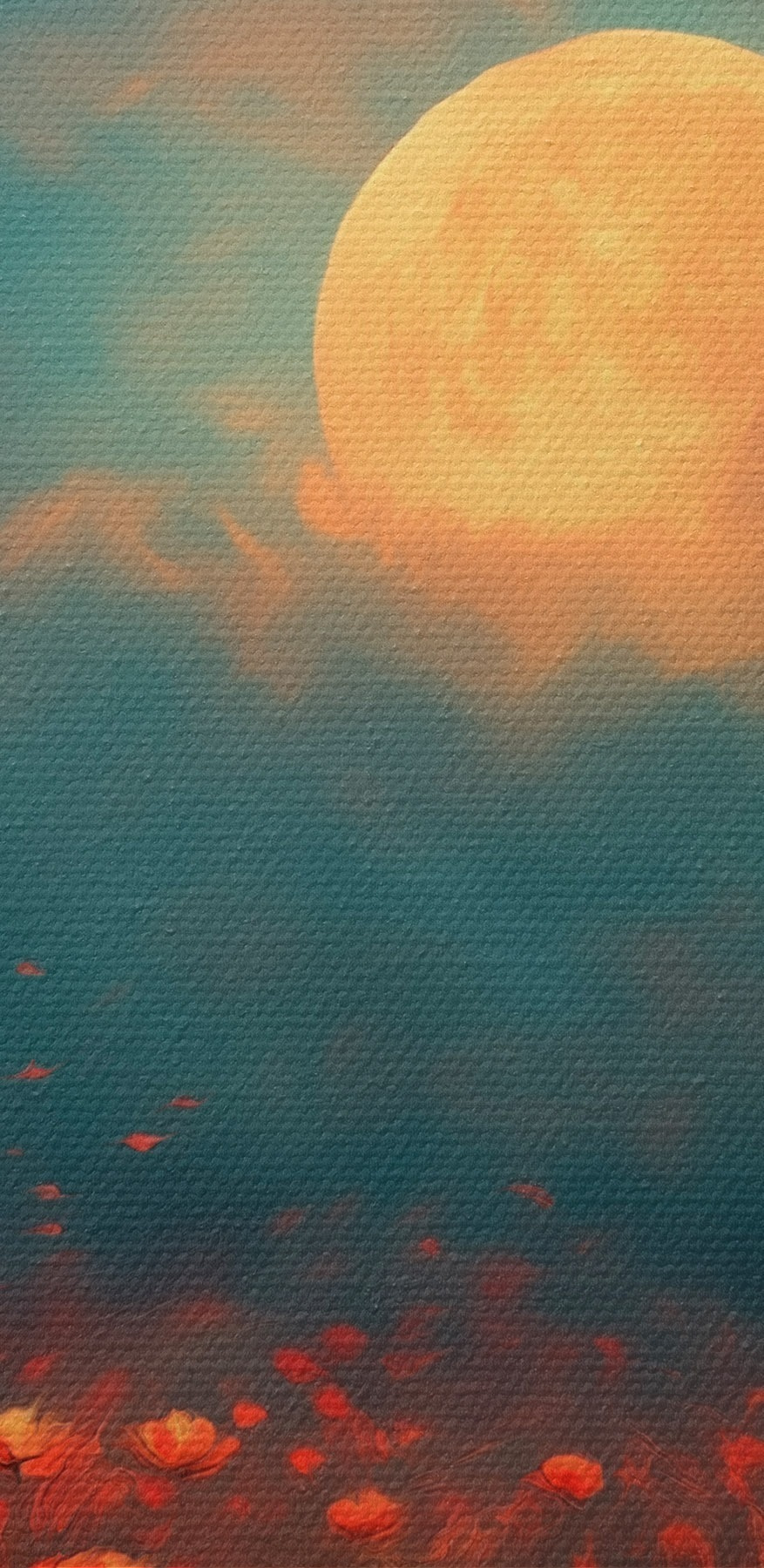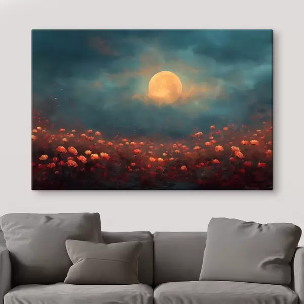 Obraz Mesiac nad poľom červených kvetov na zamračenom večernom nebi Nr. s46167