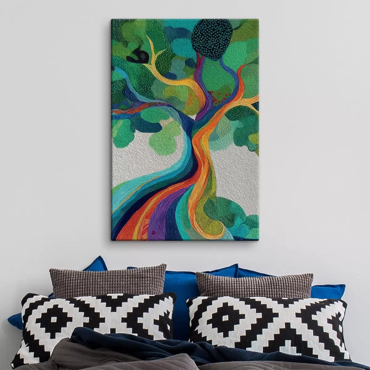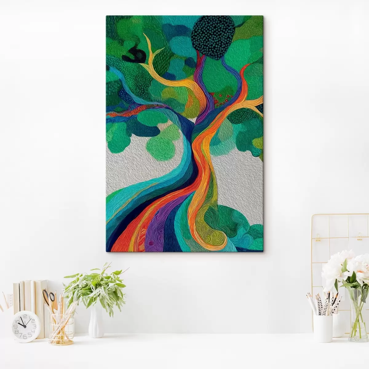 Obraz Strom s dúhovými vetvami na zelenom pozadí Nr. s46173