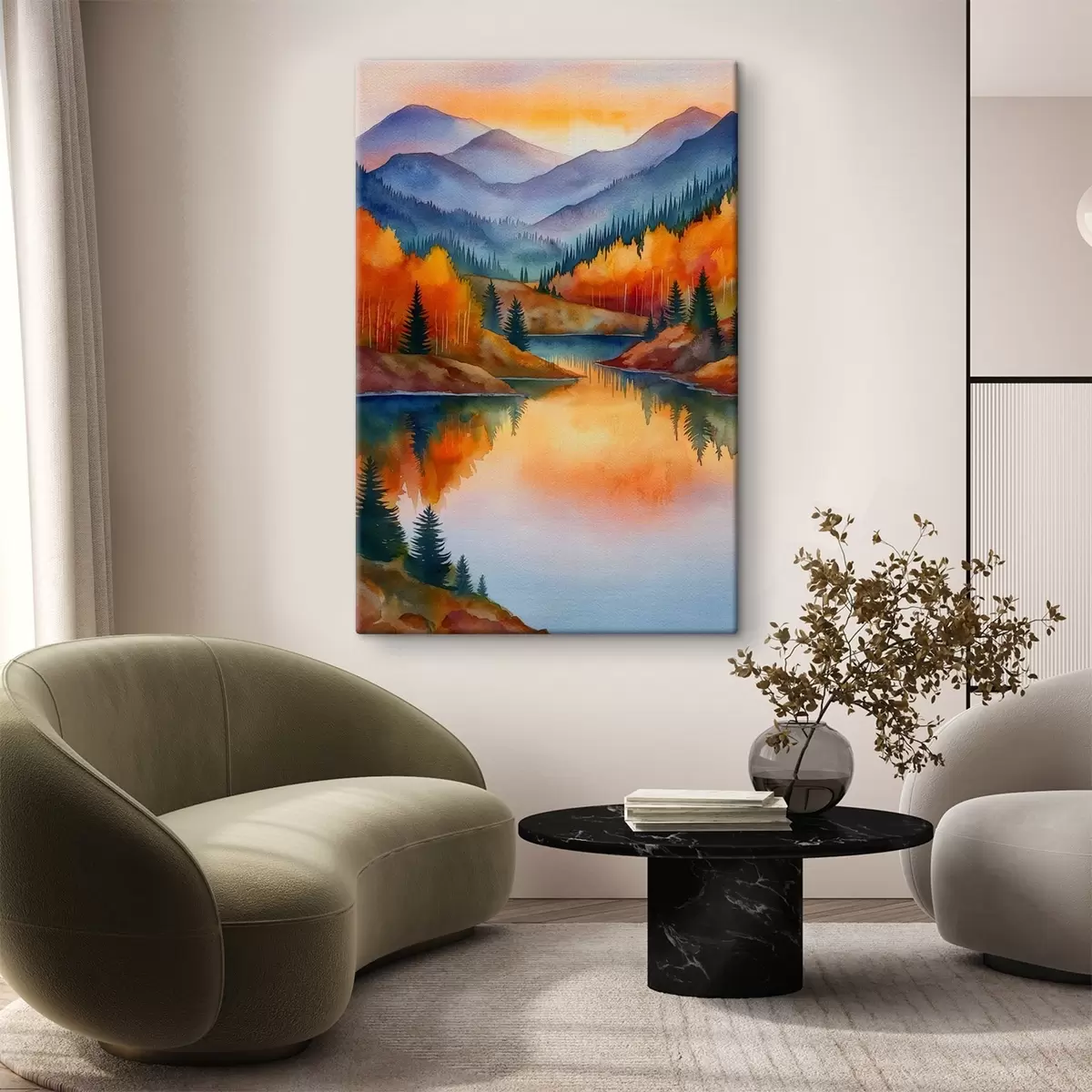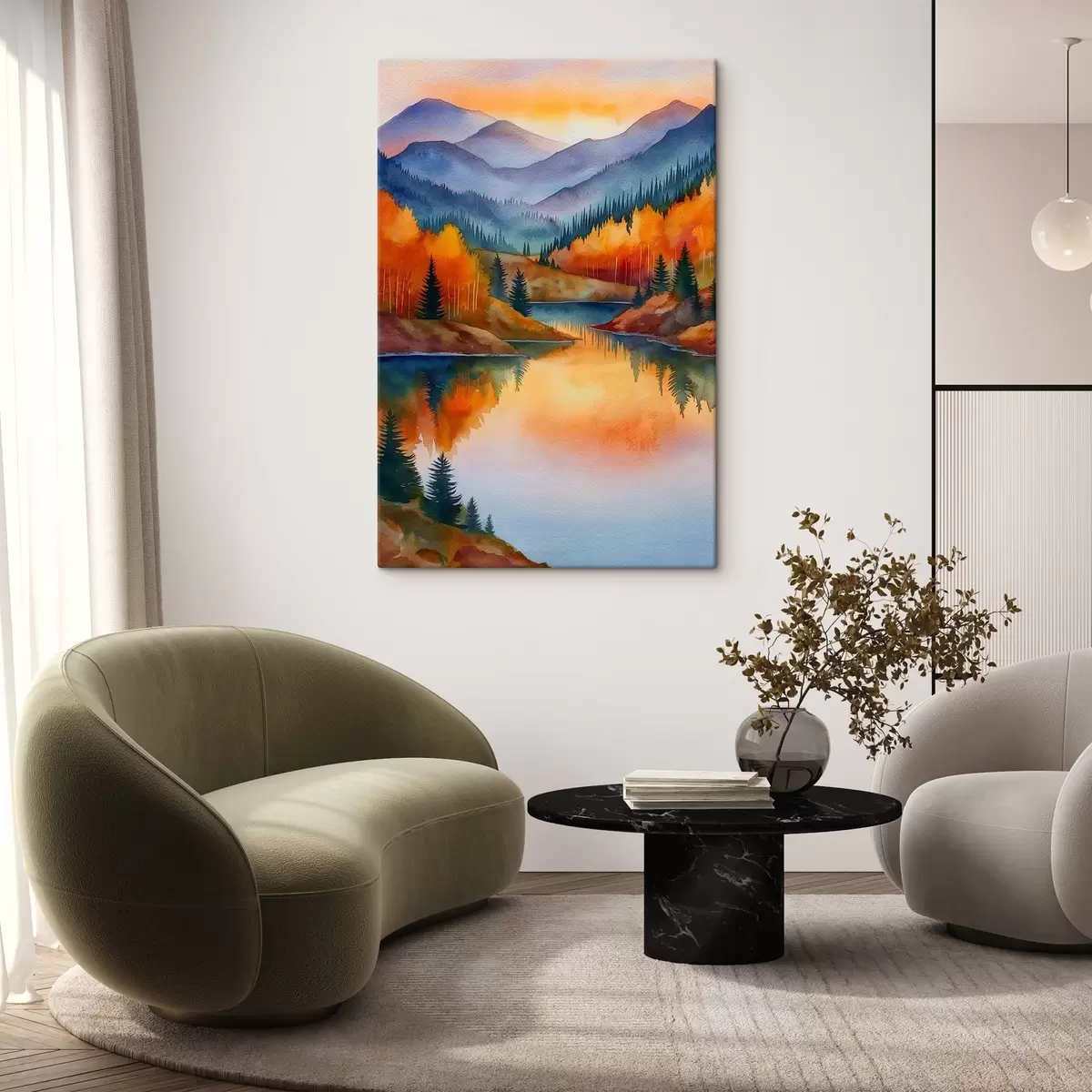 Obraz Jesenná krajina s horami odrážajúcimi sa v pokojnom jazere Nr. s46174