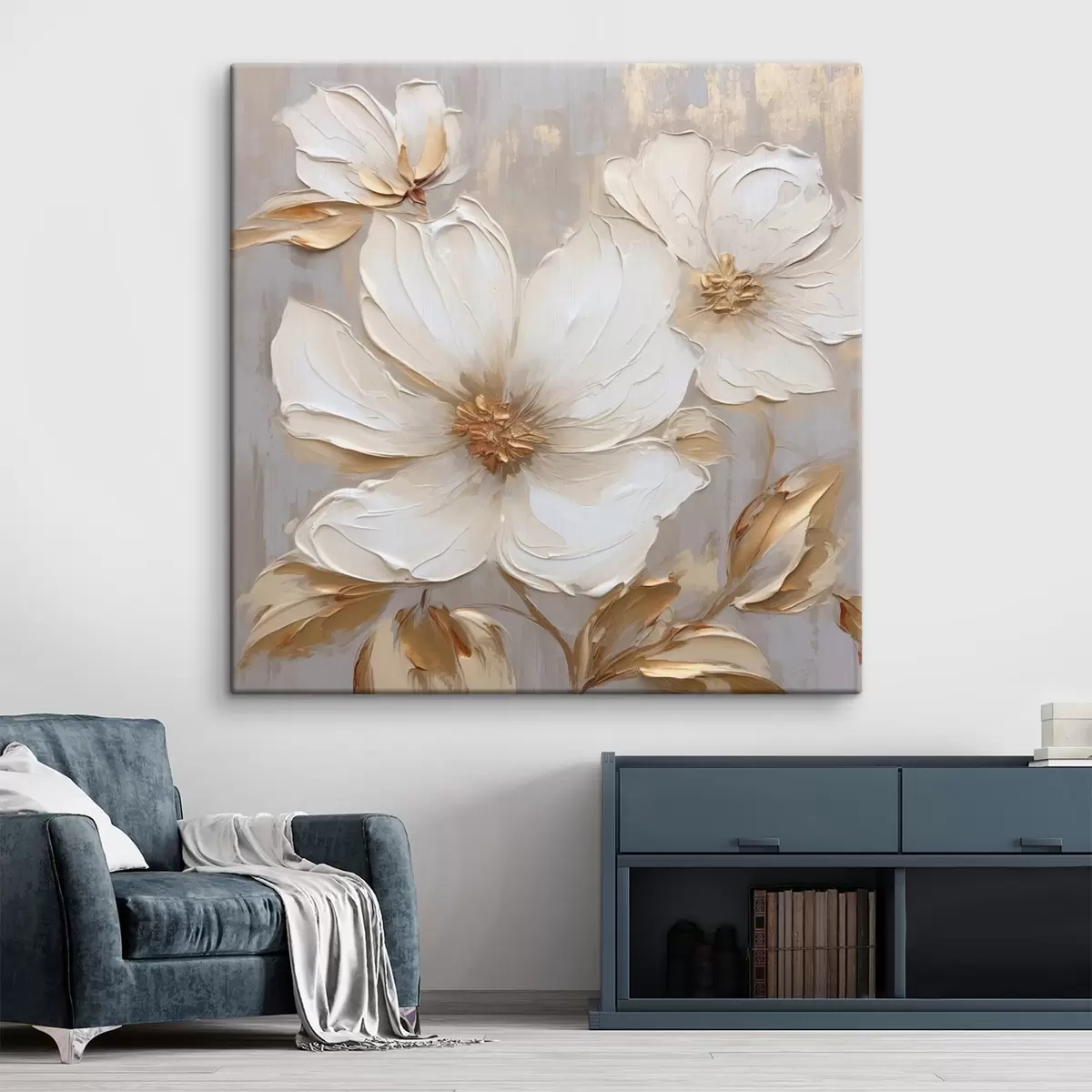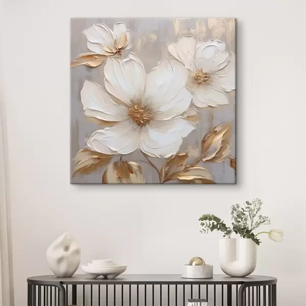 Obraz Veľké textúrované kvety s maliarskymi ťahmi v teplej farebnej palete Nr. s46176