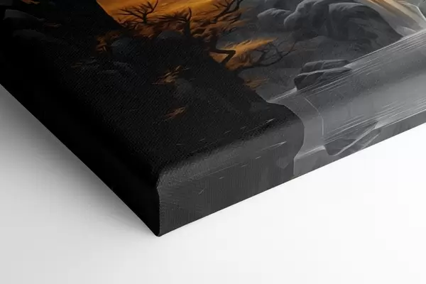 Obraz Skalnatá krajina s vodopádom v teplých farbách západu slnka Nr. s46177