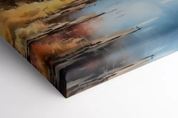 Obraz Jesenná krajina pri jazere s domom a horami Nr. s46184