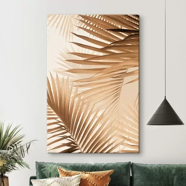 Obraz Abstraktné palmové listy v hnedých odtieňoch, tropické, botanické, príroda, minimalistické, elegantné, moderný dizajn Nr. s46275