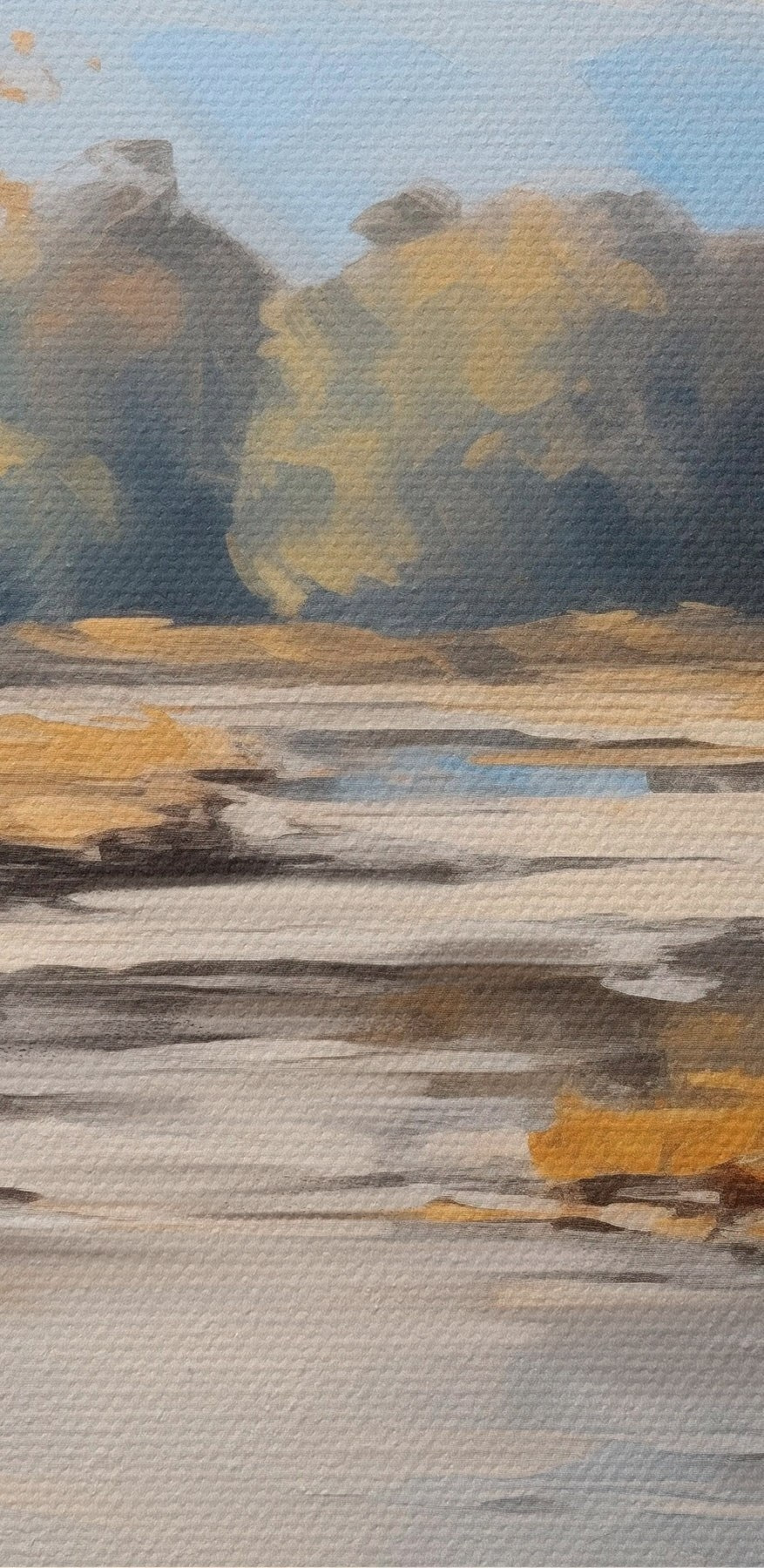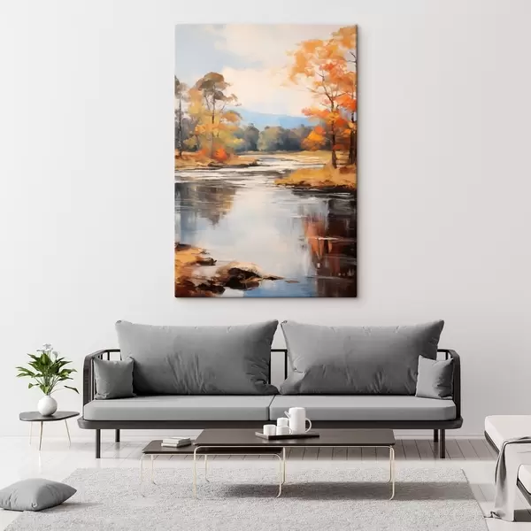 Obraz Krajina s riekou tečúcou cez les na jeseň, žlté a oranžové stromy, maliarsky štýl Nr. s46281