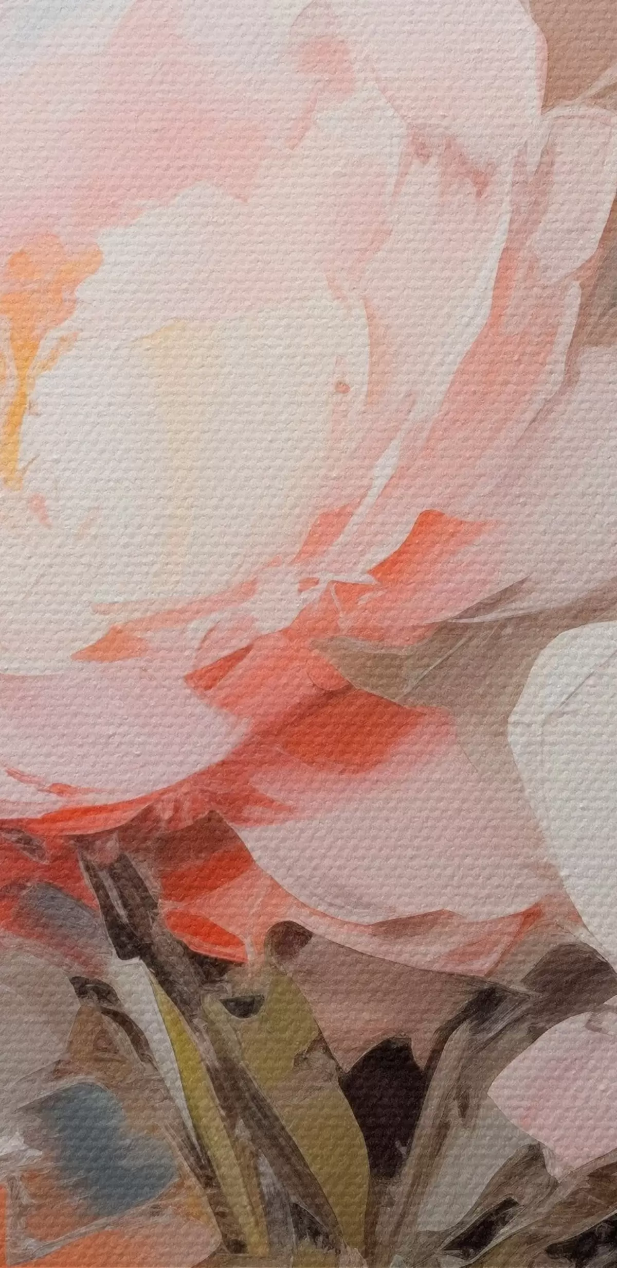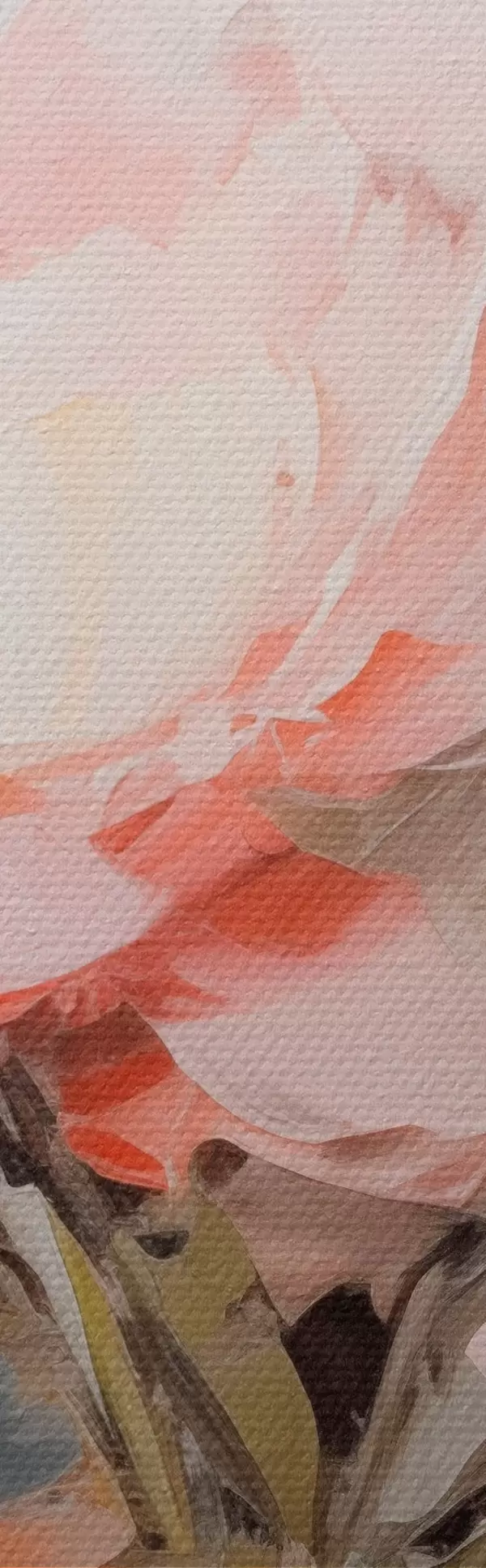 Obraz Kytica ružových a bielych pivoniek v sklenenej váze, jemné ťahy štetcom, pastelové farby, neutrálne pozadie Nr. s46295