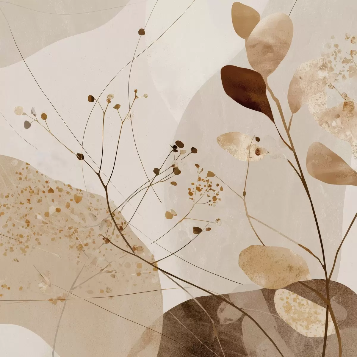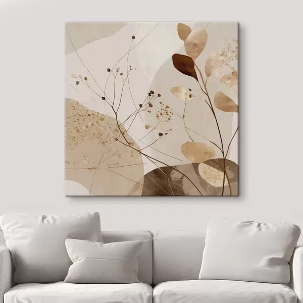 Obraz Abstraktné tvary a rastlinné motívy v béžových odtieňoch Nr. s46309