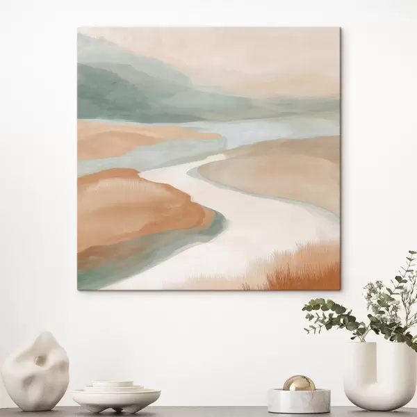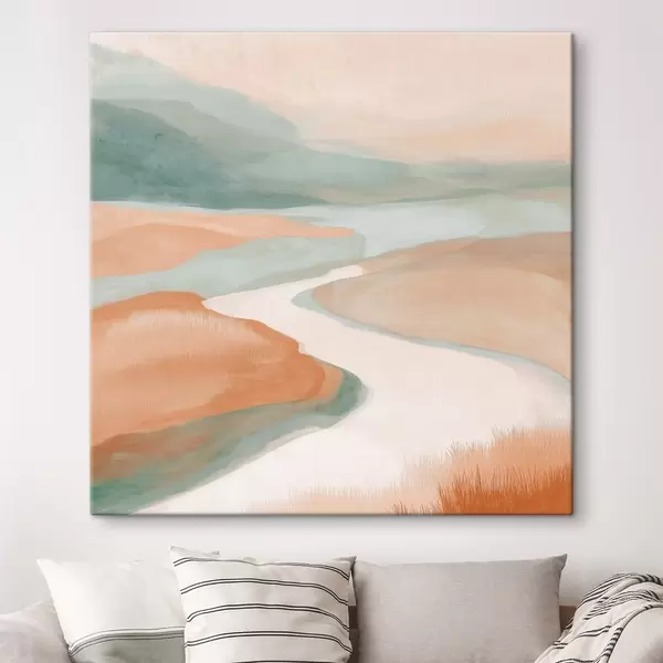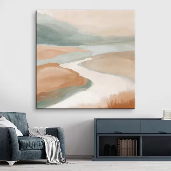 Obraz Abstraktná krajina s riekou v oranžovej a zelenej farbe Nr. s46316