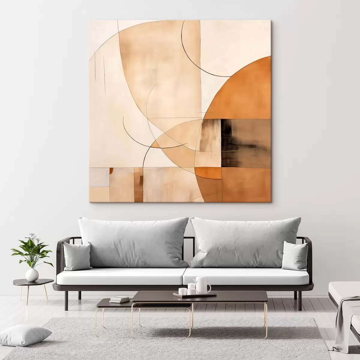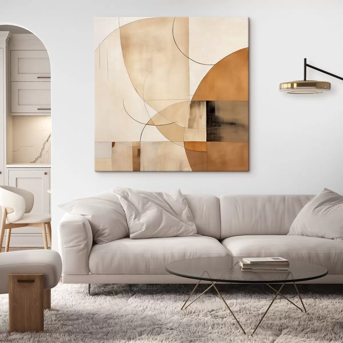 Obraz Geometrická abstrakcia s zakrivenými líniami a béžovými odtieňmi Nr. s46320