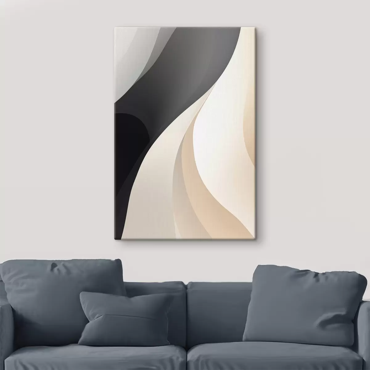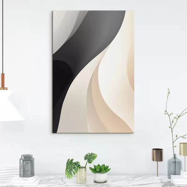 Obraz Elegantné prekrývajúce sa krivky v uhlovo čiernej, slonovinovej a pieskovej farbe Nr. s46493