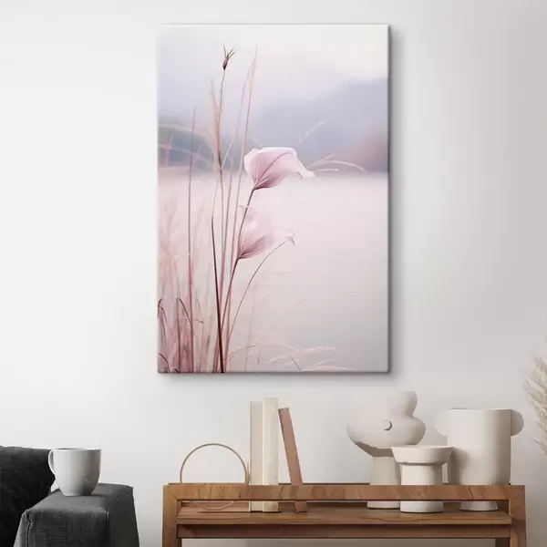 Obraz Jemné ružové kvety pri pokojnom brehu jazera Nr. s46503