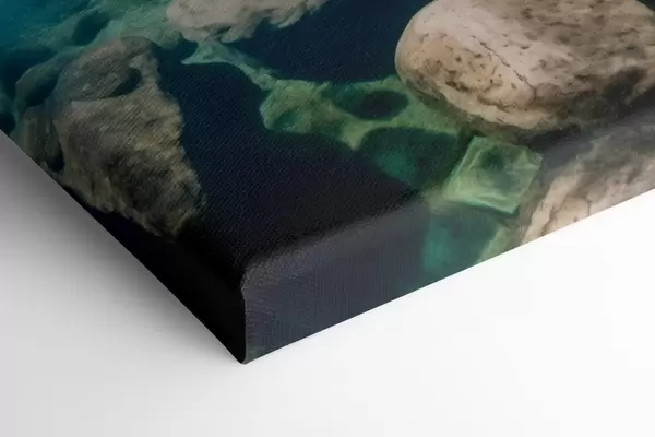 Obraz Smaragdové alpské jazero s skalami pod ním a vyvýšenými vrcholmi Nr. s46515