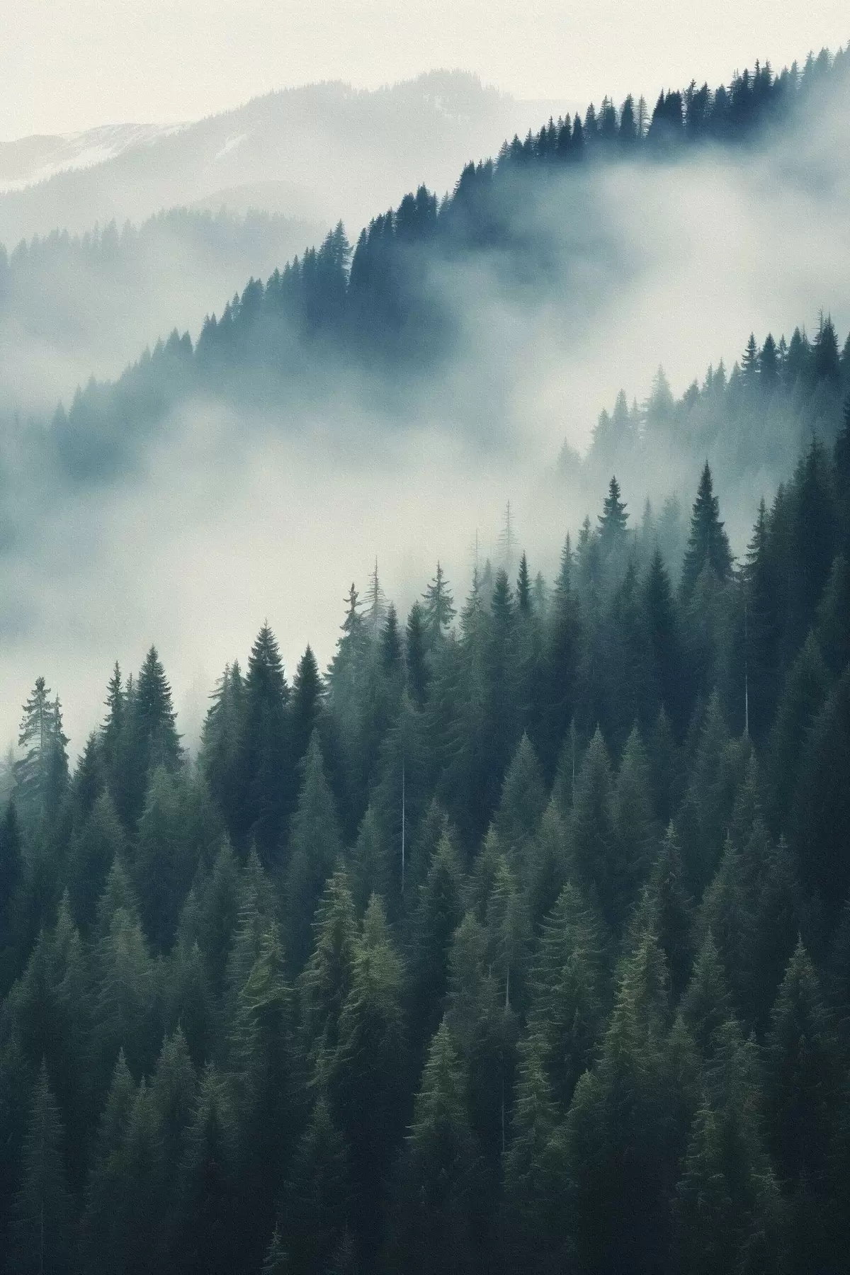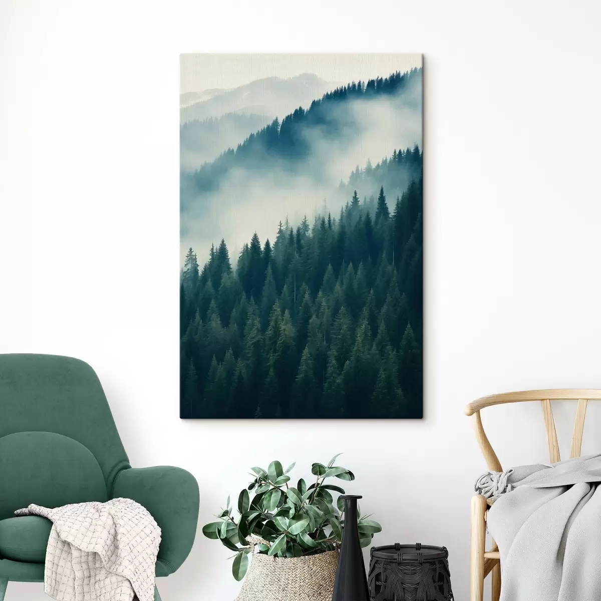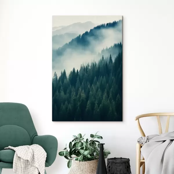Obraz Hmla nad ihličnatými svahmi, tmavozelené odtiene Nr. s46516