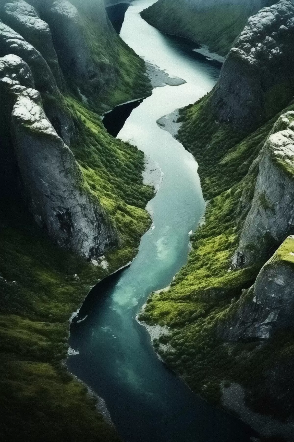 Obraz Kľukatá rieka medzi útesmi, pohľad z vtáčej perspektívy Nr. s46521