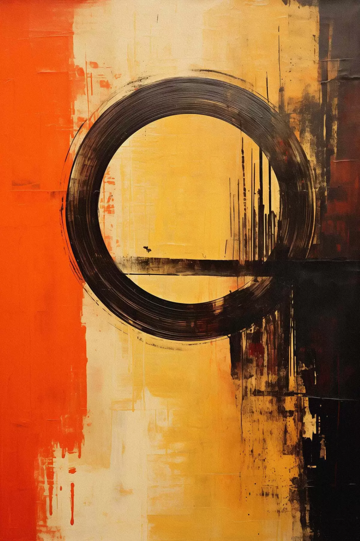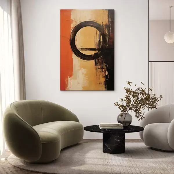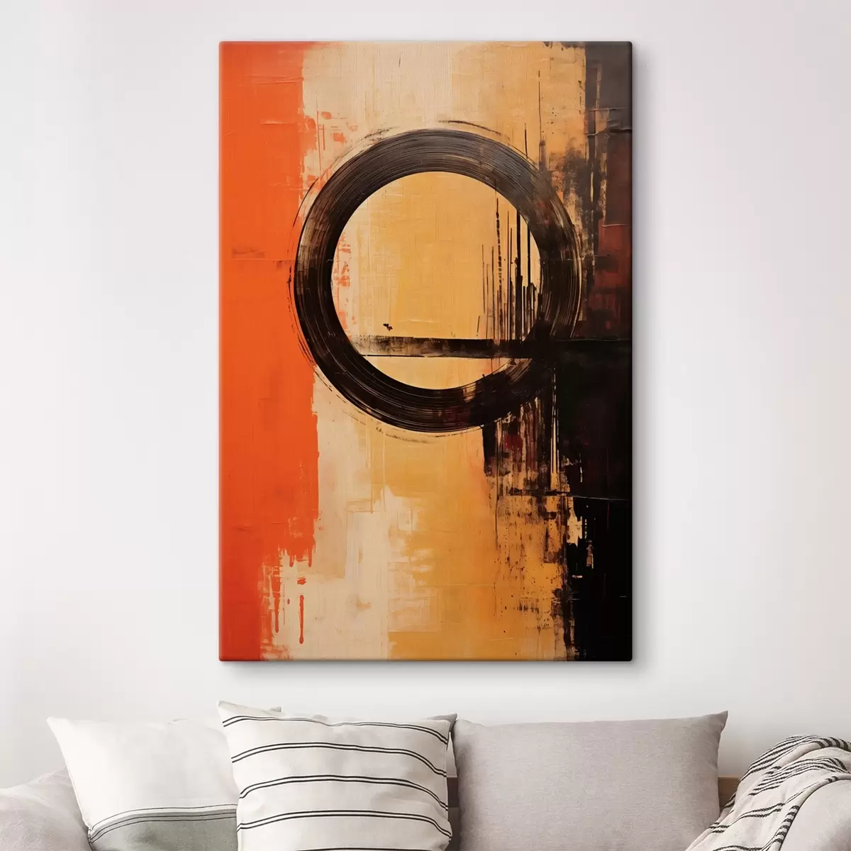 Obraz Abstraktný motív s čiernym prstencom na terakotovo-pieskovom pozadí Nr. s46529