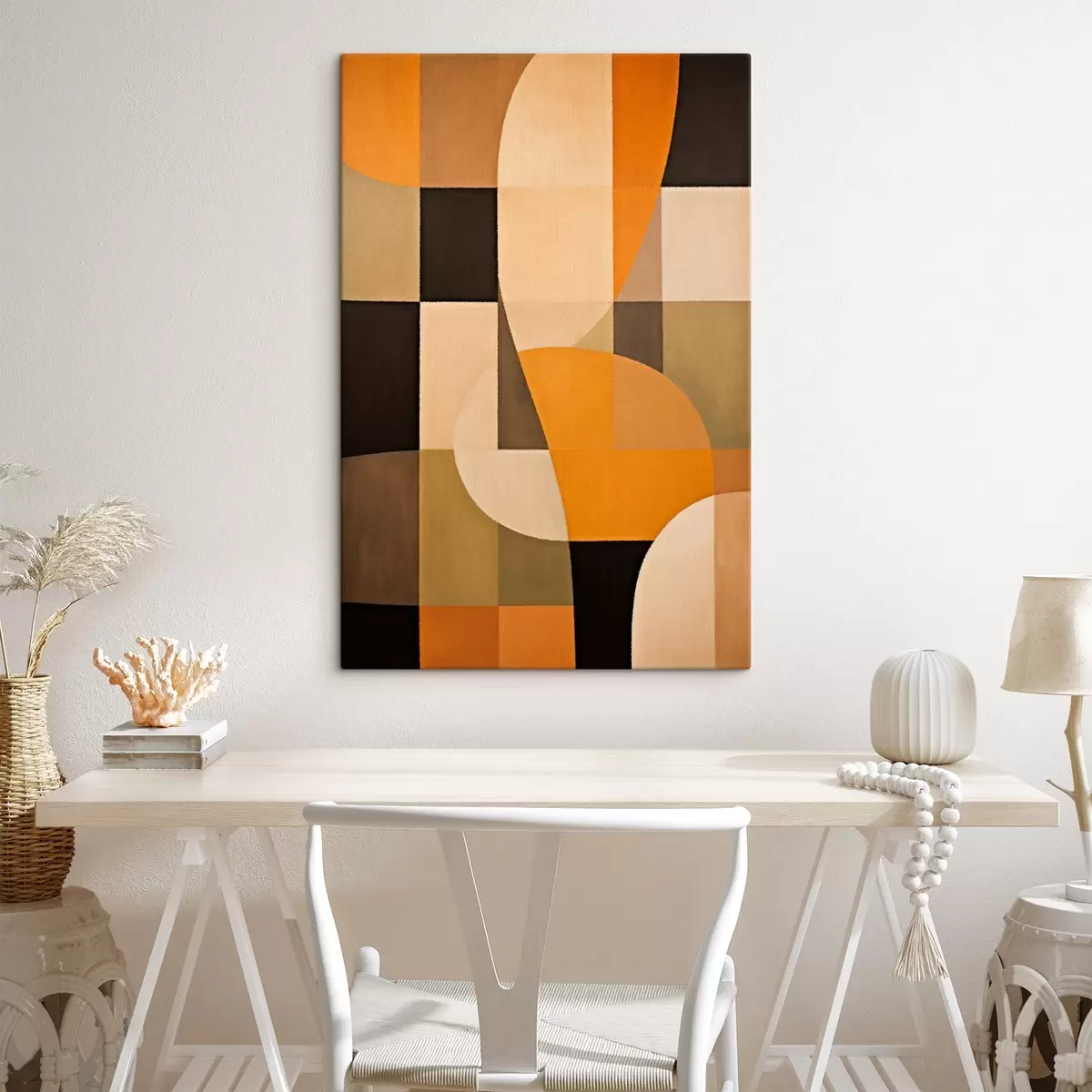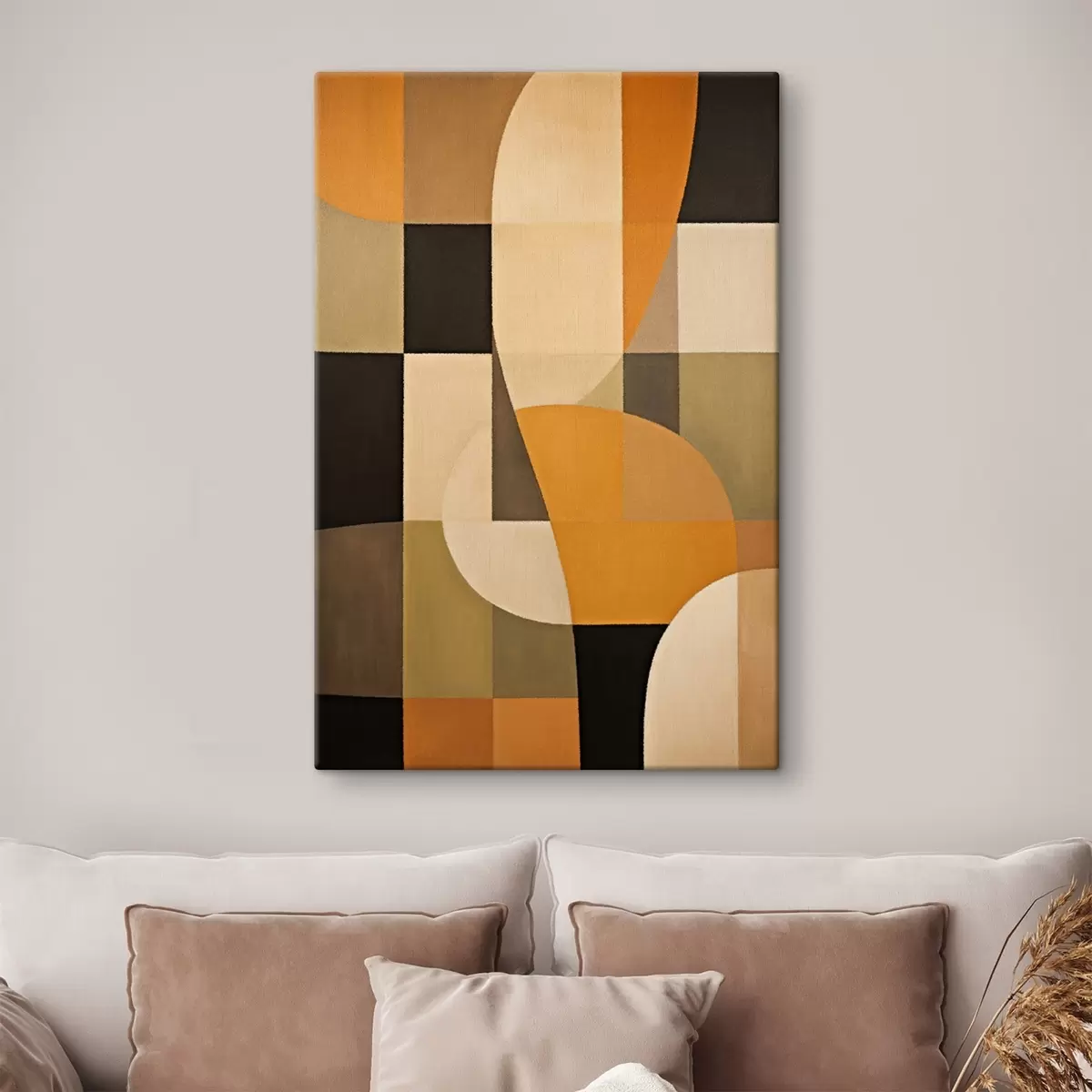 Obraz Patchwork z obdĺžnikov s hladkým oranžovým oblúkom Nr. s46534