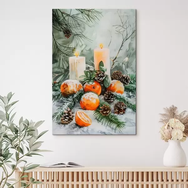 Obraz Sviečky, mandarínky a šišky Nr. s46614