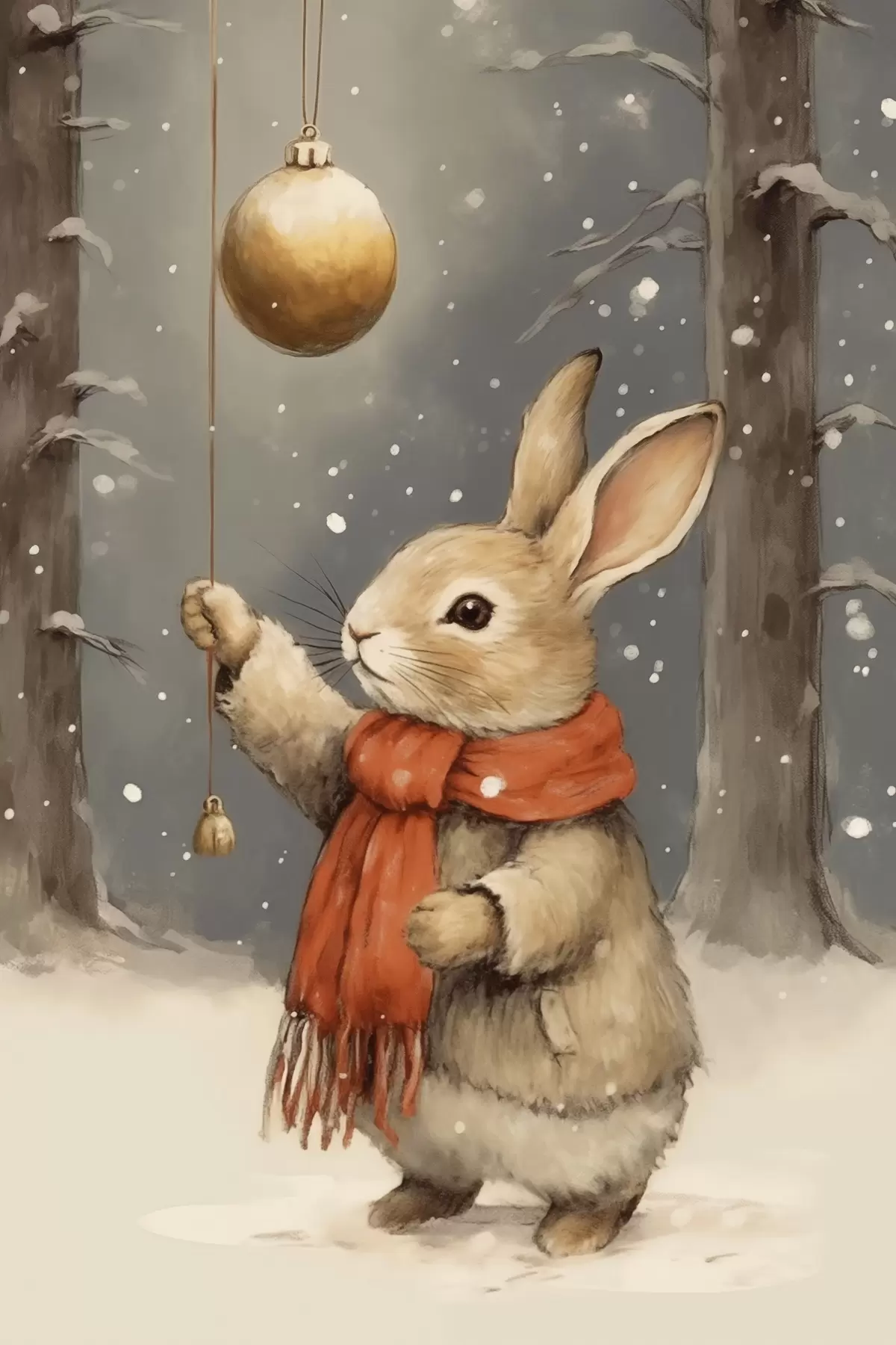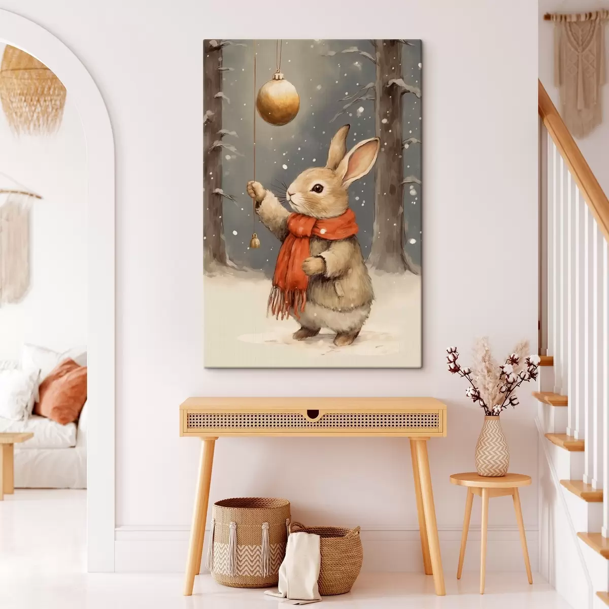 Obraz Zimný zajac so šálom a vianočnou ozdobou Nr. s46619