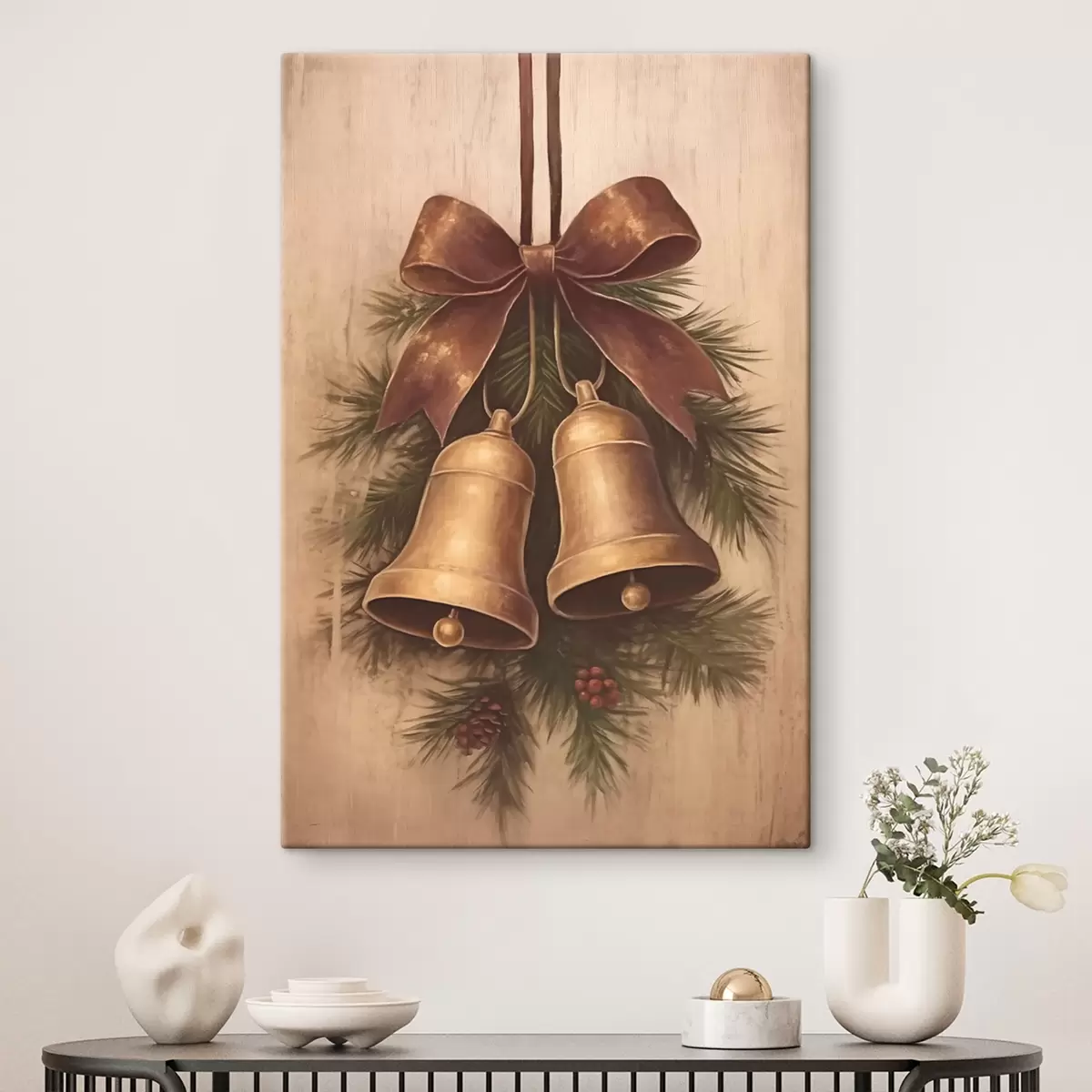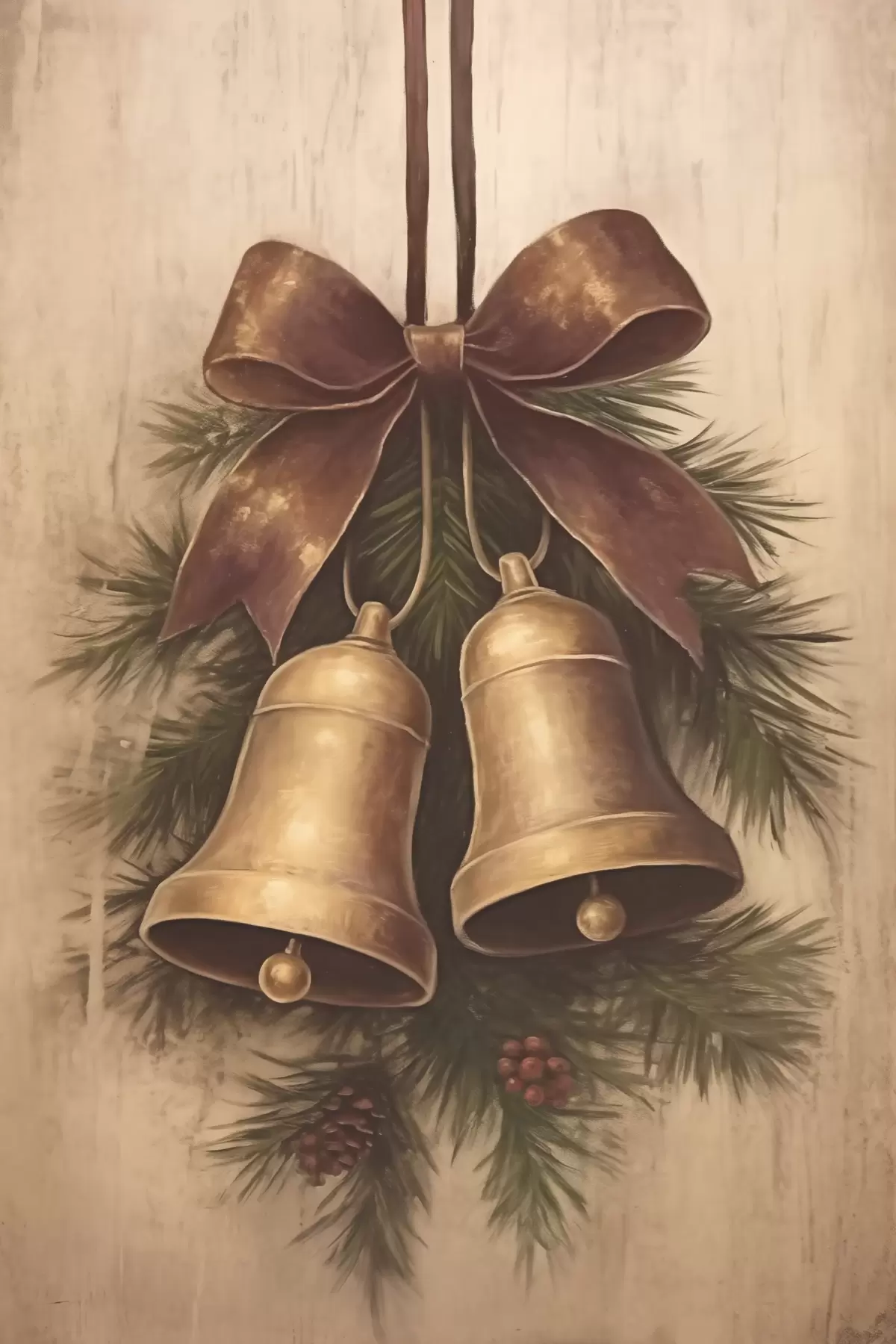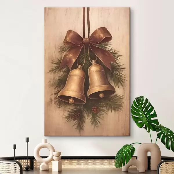 Obraz Vintage vianočná dekorácia s dvoma zvončekmi a mašľou Nr. s46626