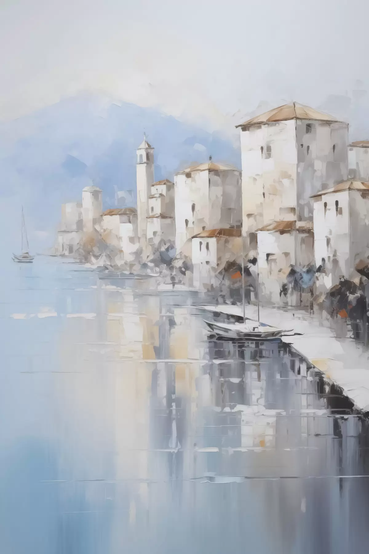 Obraz Abstraktné domy pri zátoke imitácia maľby Nr. s46673