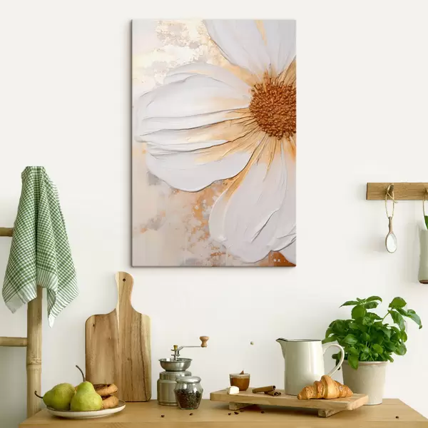 Obraz Biela kvetina s jemnými okvetnými lístkami, textúrované abstraktné pozadie, elegantné, dekoratívne umenie Nr. s46692