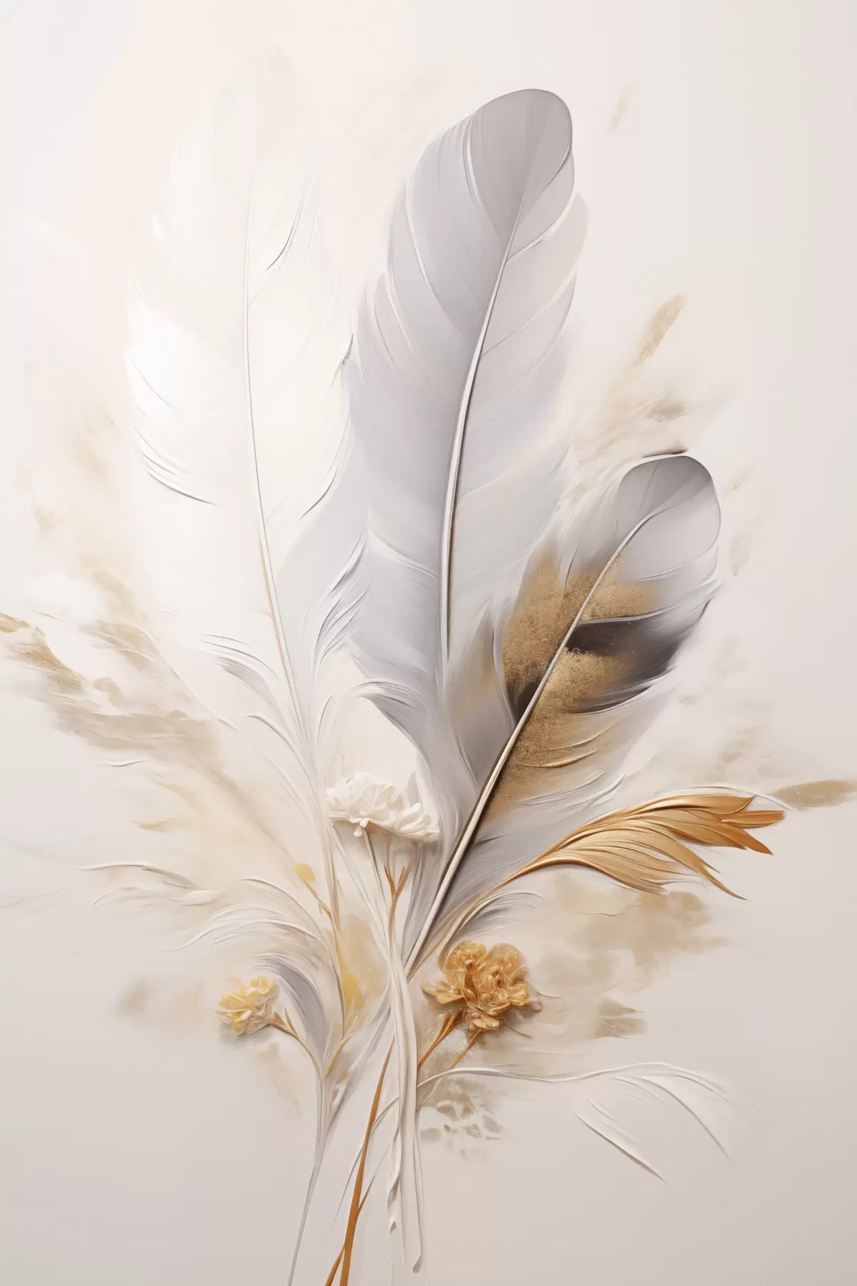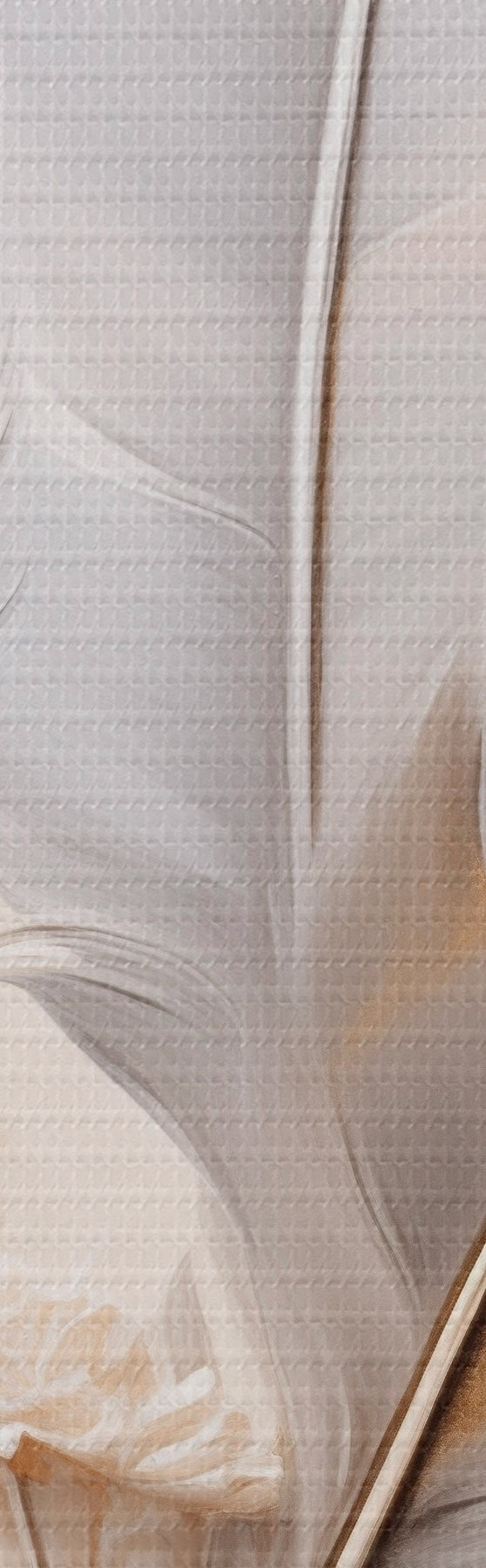 Obraz Abstraktné pierka, obklopené béžovými a hnedými chmýrami, jemné a delikátne, na svetlo béžovom pozadí. Nr. s46712