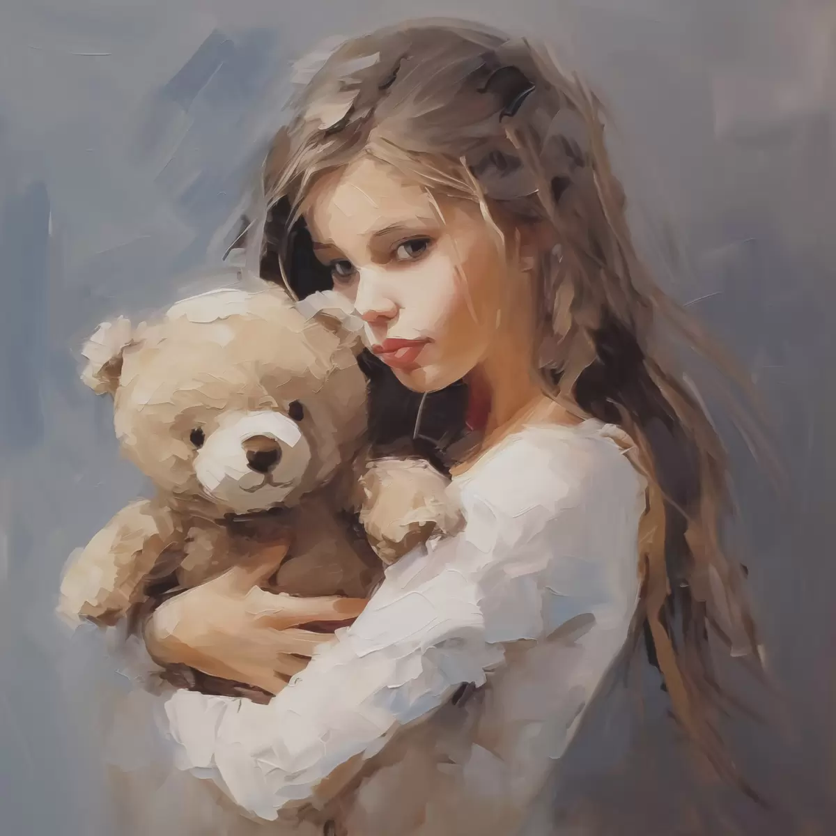Obraz Dievča s plyšovým medvedíkom, imitácia maľby Nr. s46746