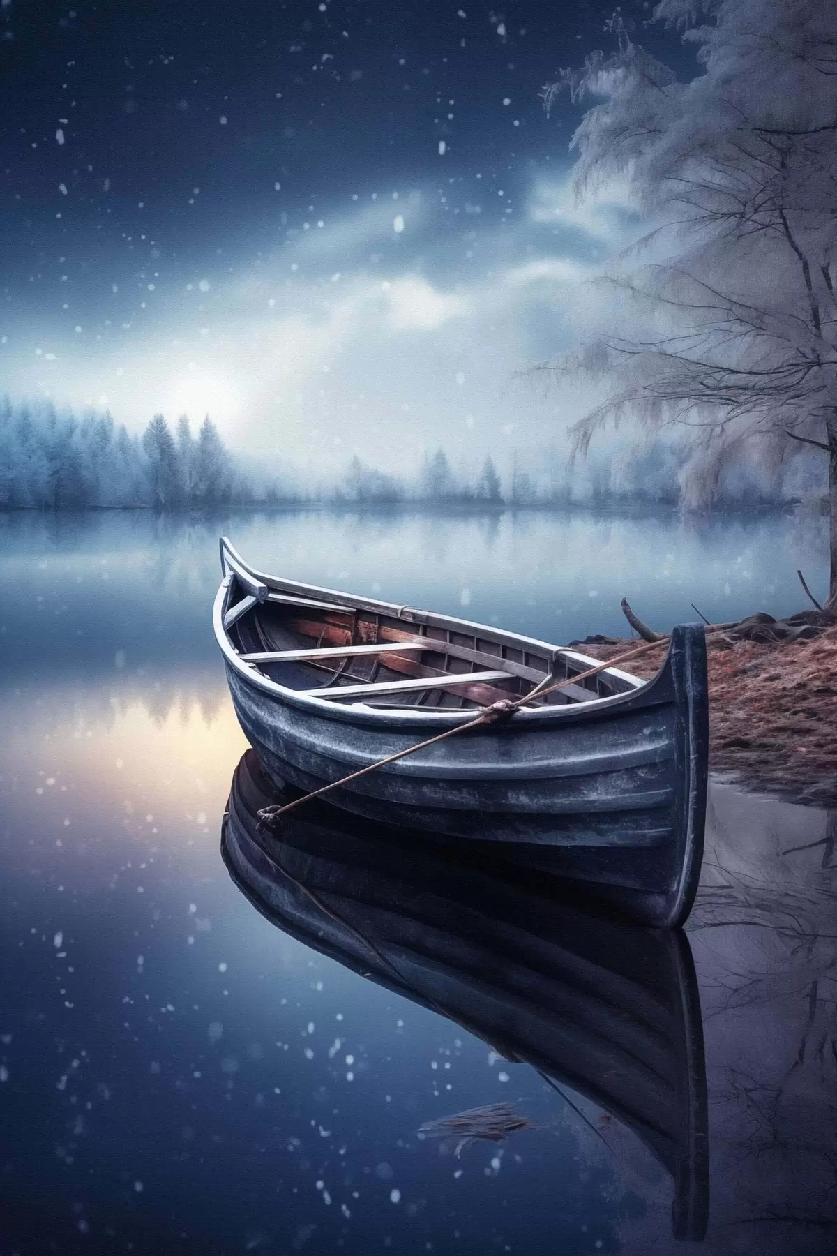 Obraz Prázdna loď pri zimnom jazere Nr. s46773