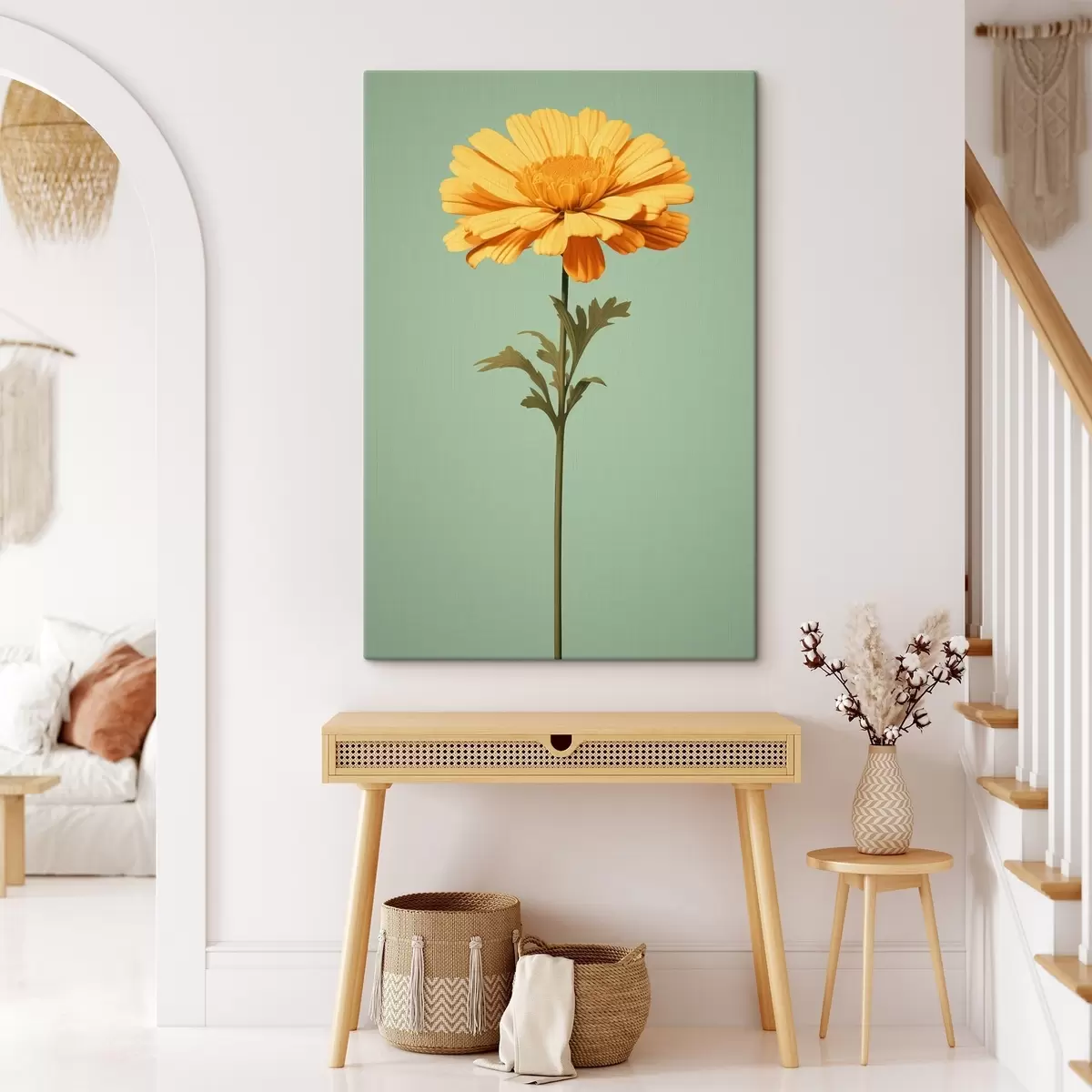 Obraz Žltá nechtíka na mätovom pozadí v minimalistickom štýle Nr. s46926