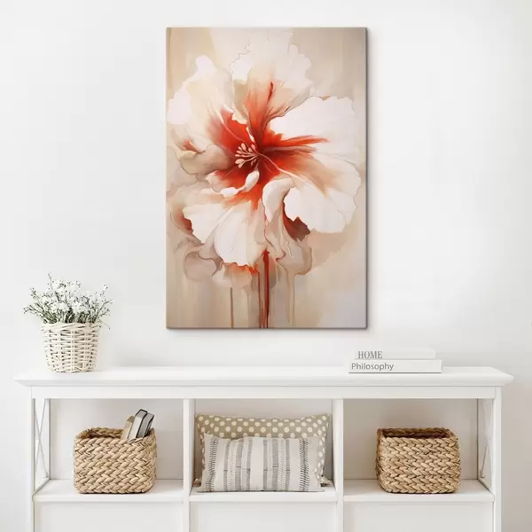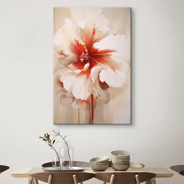 Obraz Záber na bielu a červenú kvetinu s polopriehľadnými okvetnými lístkami a stekajúcimi kvapkami farby Nr. s46941
