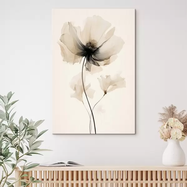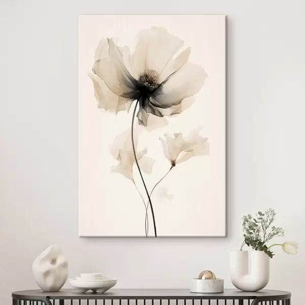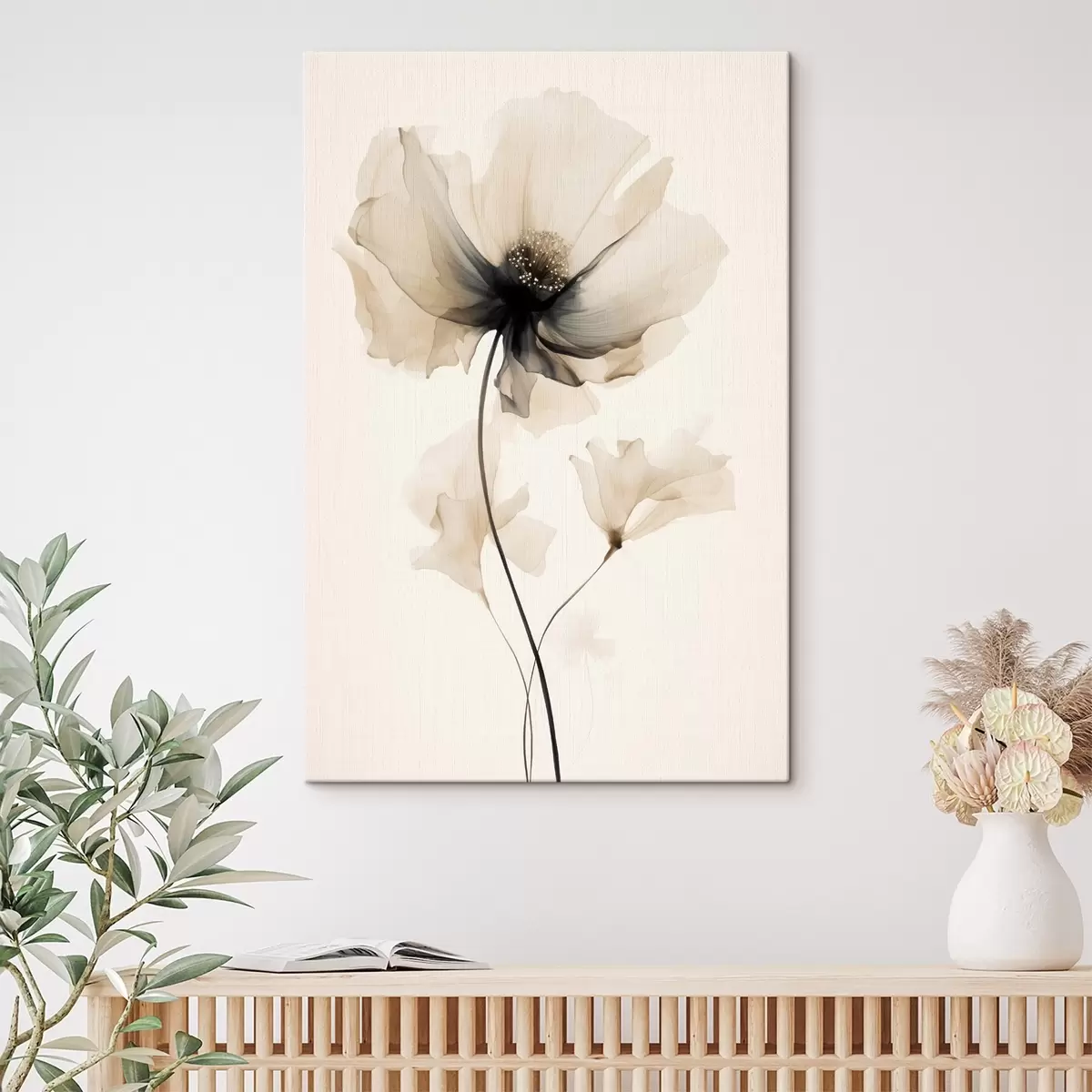 Obraz Jemná polopriehľadná kvetina s tmavým stredom v minimalistickom štýle Nr. s46944