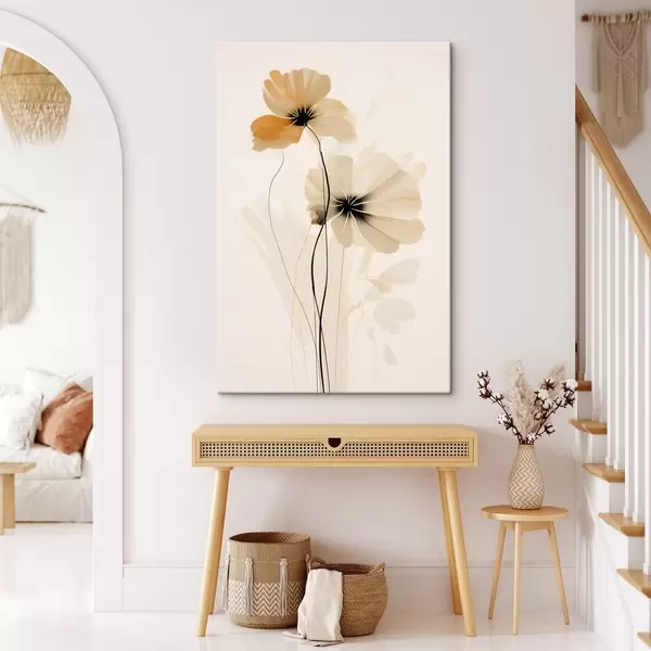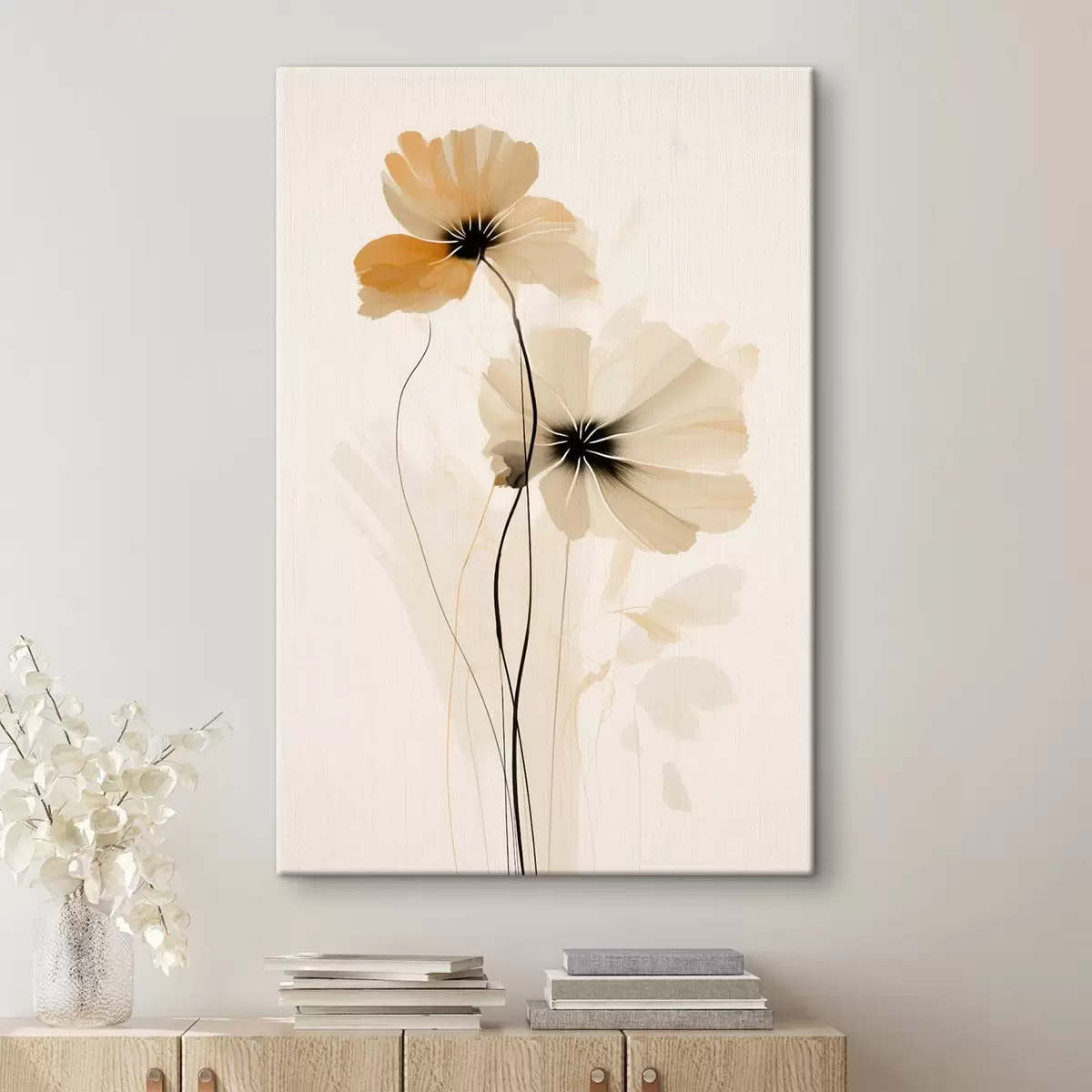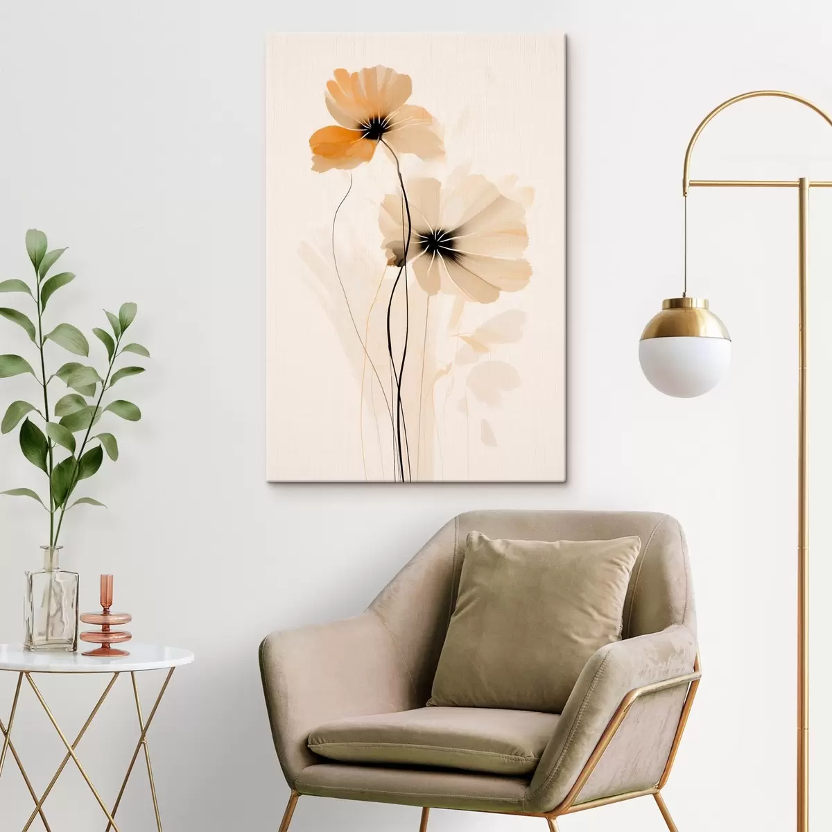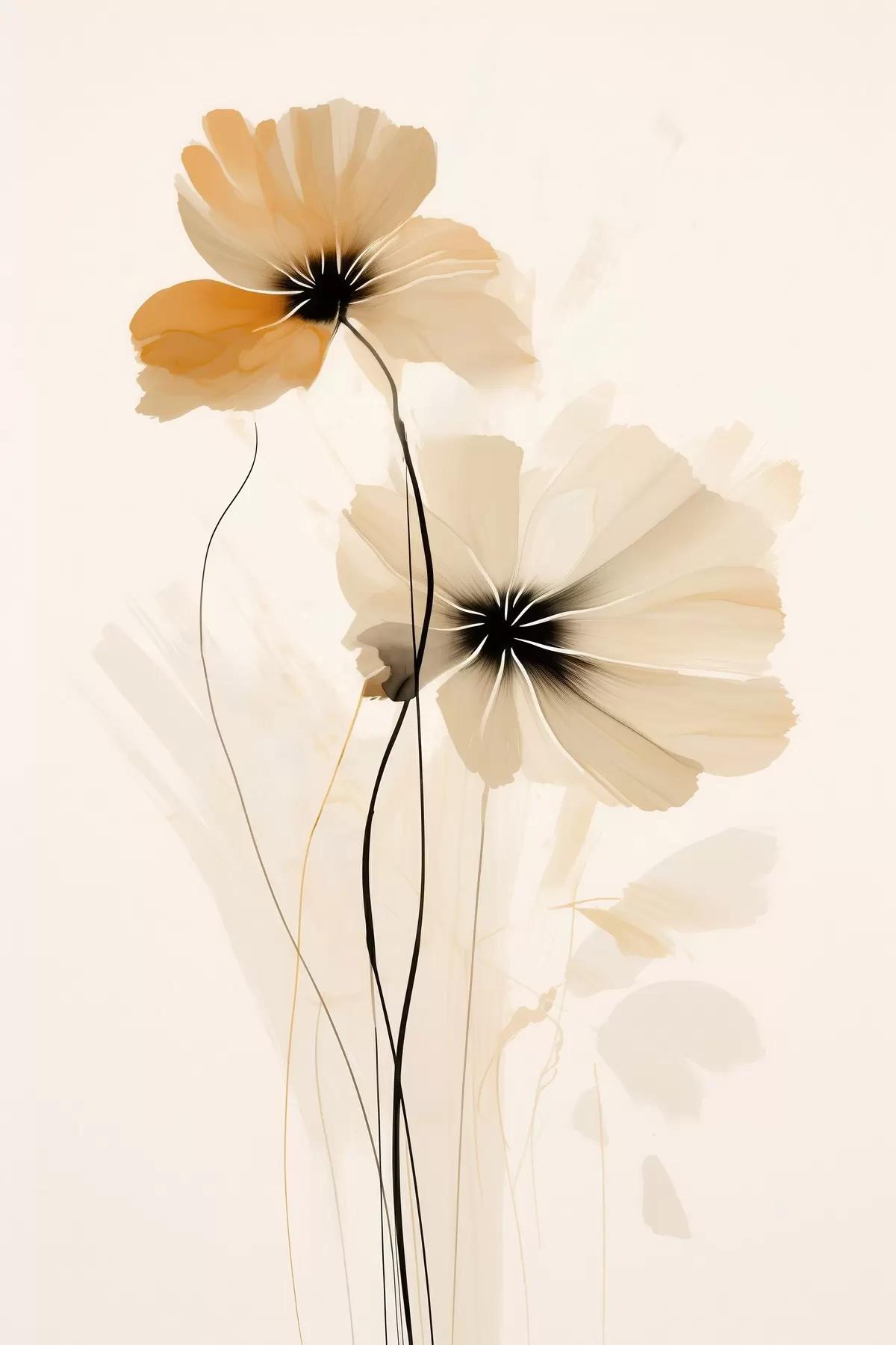 Obraz Kvety v béžovo-broskyňovej farebnej škále s tmavými stredmi v minimalistickom štýle Nr. s46945