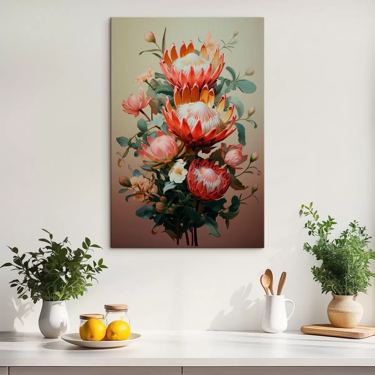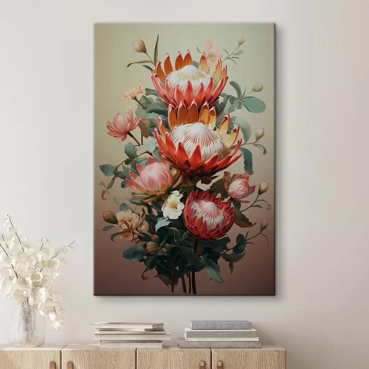 Obraz Kompozícia s veľkými proteami v modernom digitálnom maliarskom ilustračnom štýle Nr. s46947