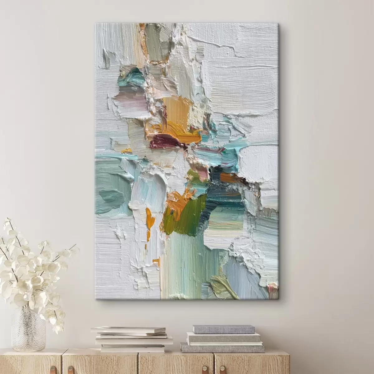 Obraz je možné zavesiť ihneď po jeho prevzatí. Obraz bude napnutý na drevených nosidlách so šírkou 2 cm.