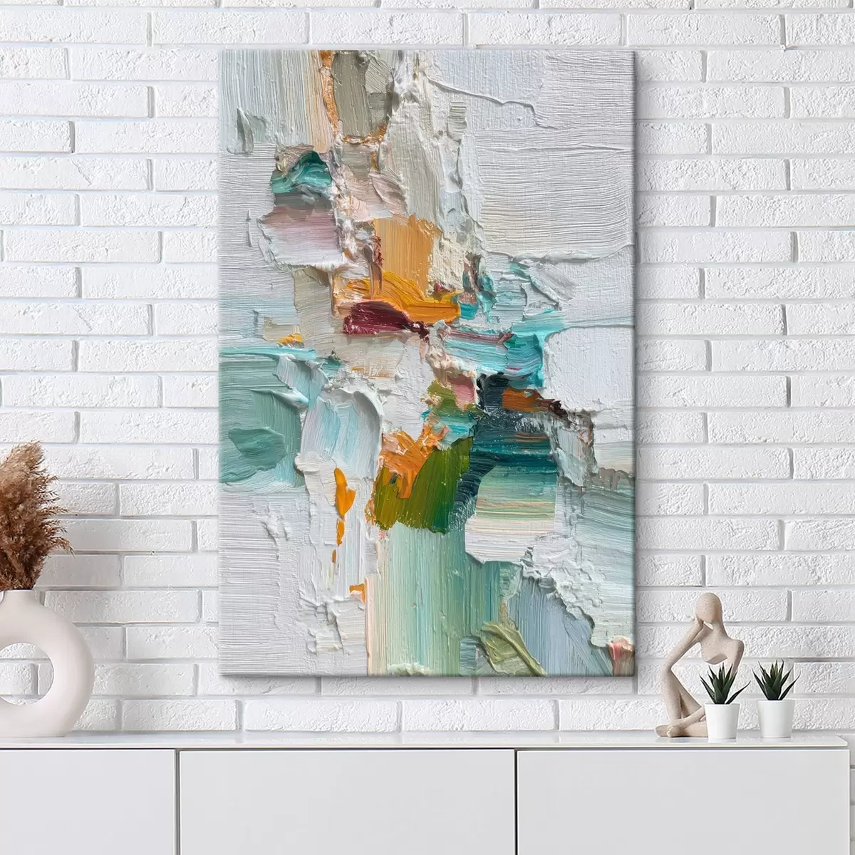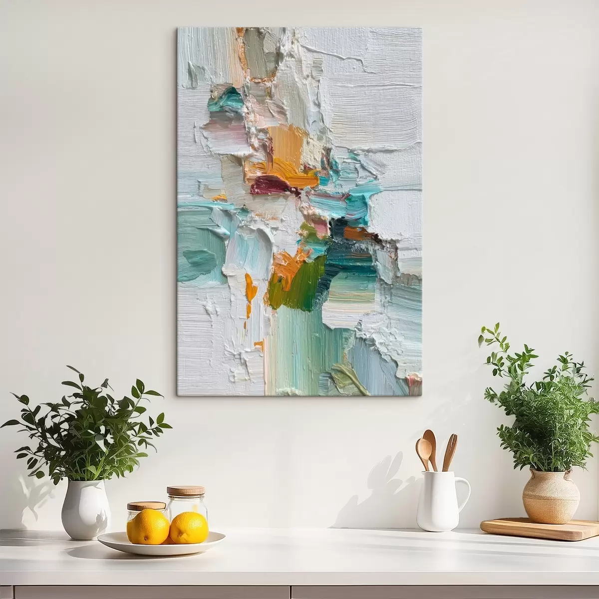 Obraz Kompozícia s tyrkysovými a oranžovými akcentmi v štýle olejomaľby Nr. s46958