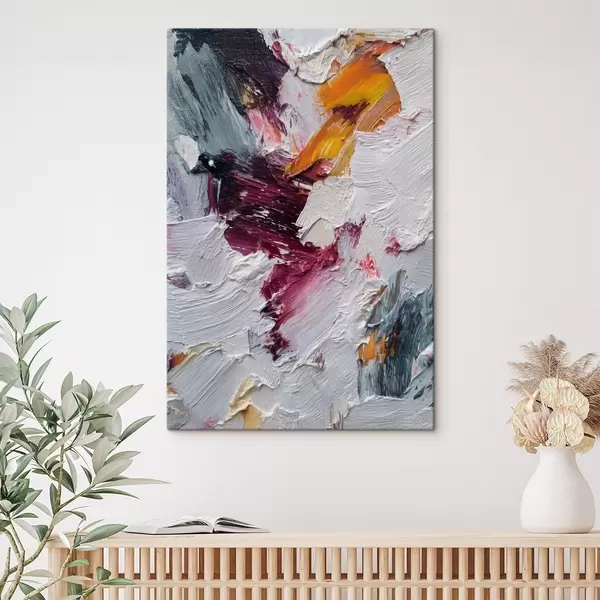 Obraz Abstraktná kompozícia s intenzívnymi čerešňovými a oranžovými ťahmi štetcom v štýle olejomaľby Nr. s46959