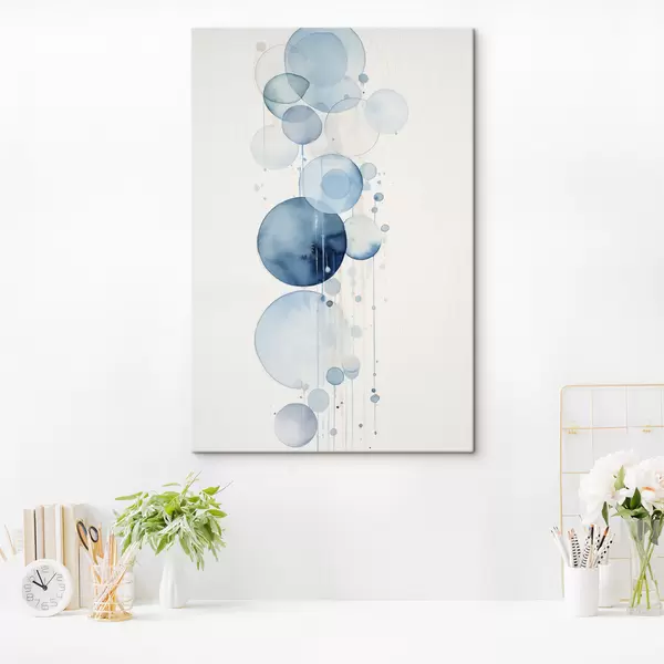 Obraz Abstraktné modré a biele akvarelové kruhy rôznych veľkostí na bielom pozadí Nr. s47021