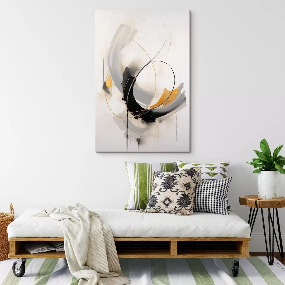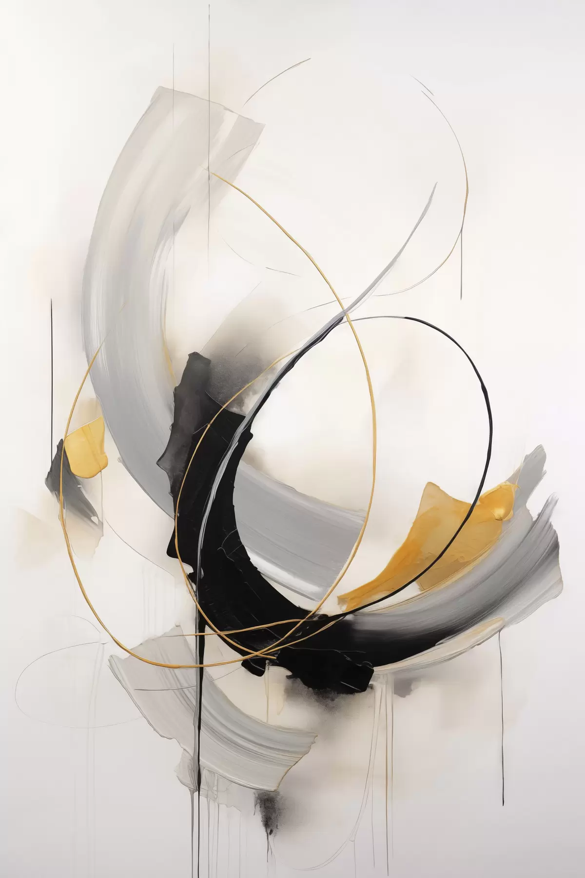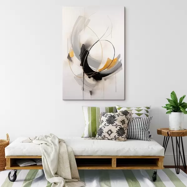 Obraz Abstraktná maľba so žltými a čierno-bielymi imitáciami štetcom, dynamické línie Nr. s47035