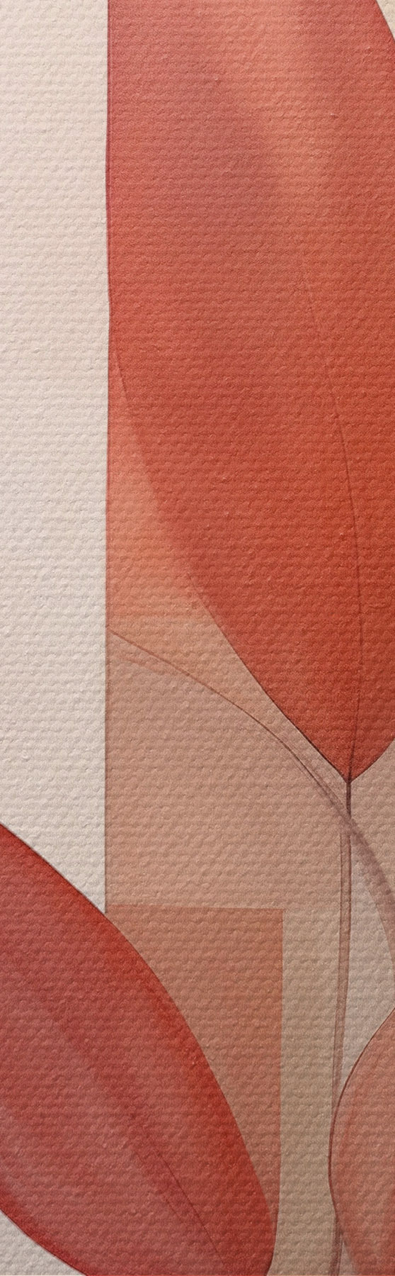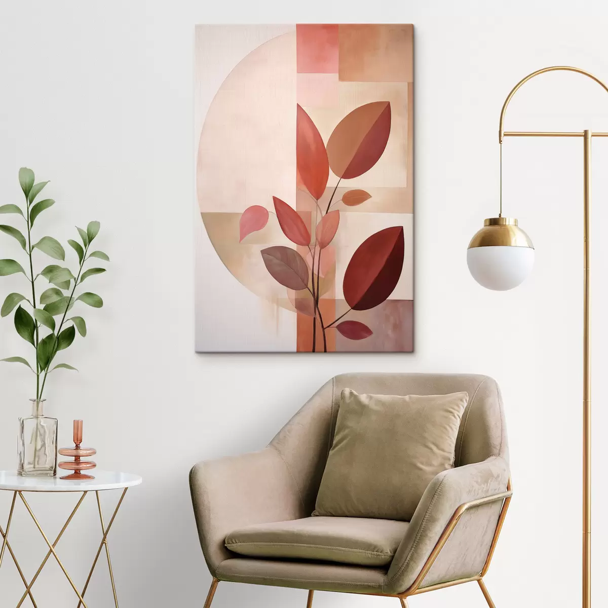 Obraz Abstraktná rastlina s červenými listami na pozadí geometrických tvarov a jemných, tlmených farieb Nr. s47041