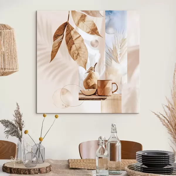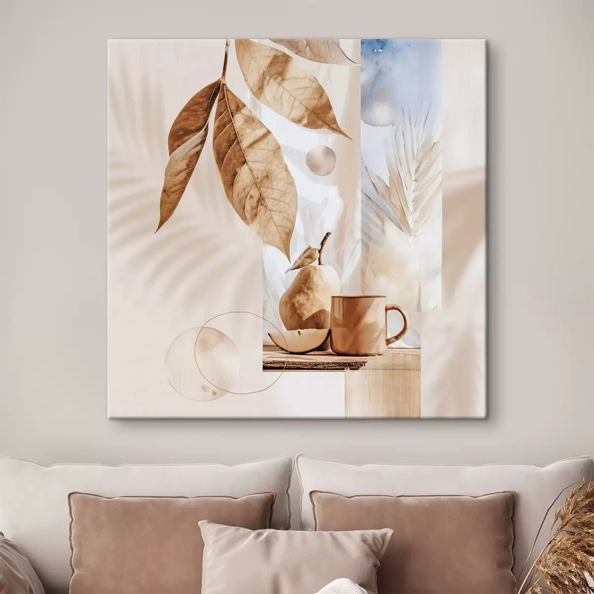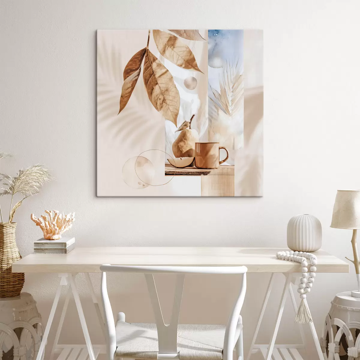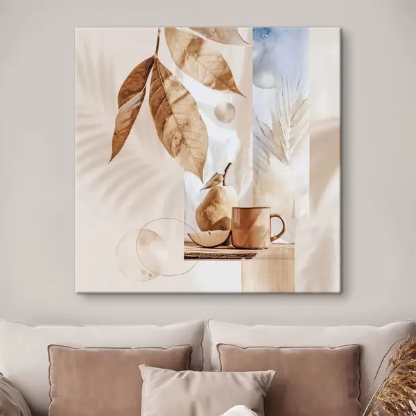 Obraz Abstrakt s listami, hruškou a šálkou Nr. s47047