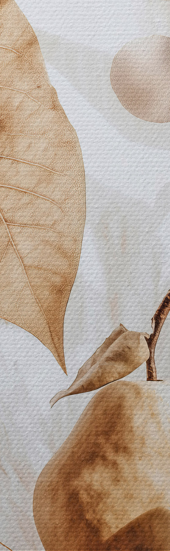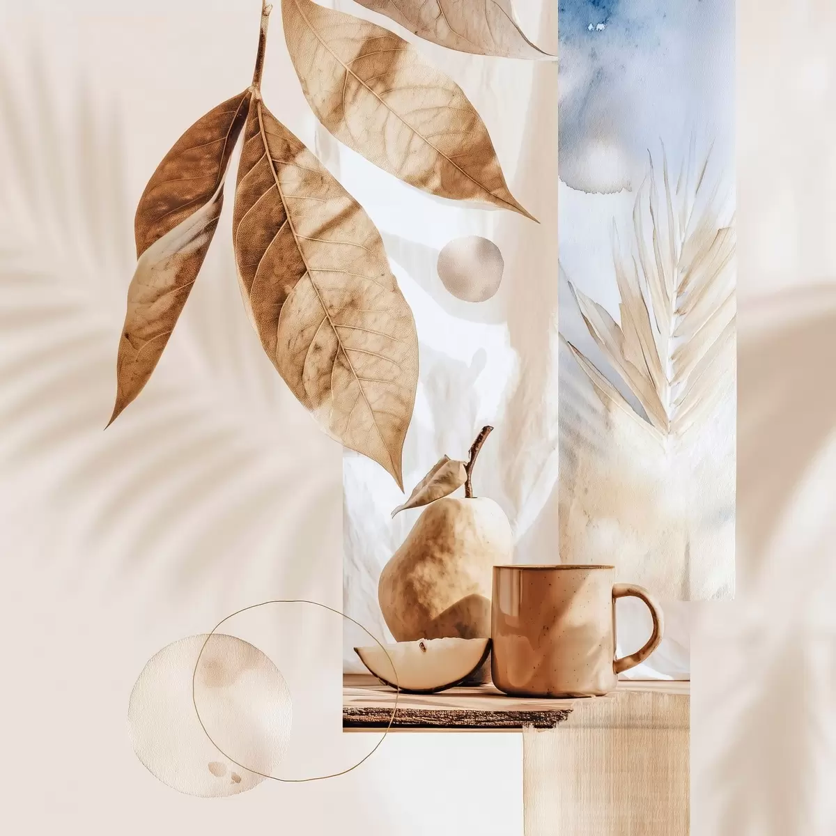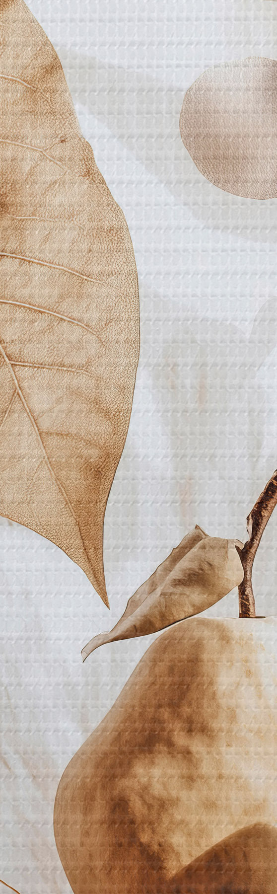 Obraz Abstrakt s listami, hruškou a šálkou Nr. s47047