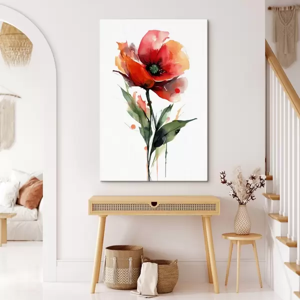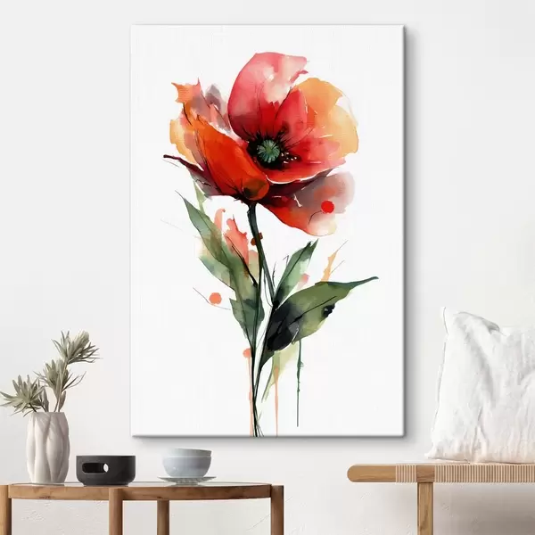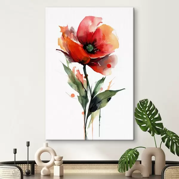 Obraz Makový kvet s výraznými kvapkami akvarelovej farby v štýle modernej umeleckej ilustrácie Nr. s47086