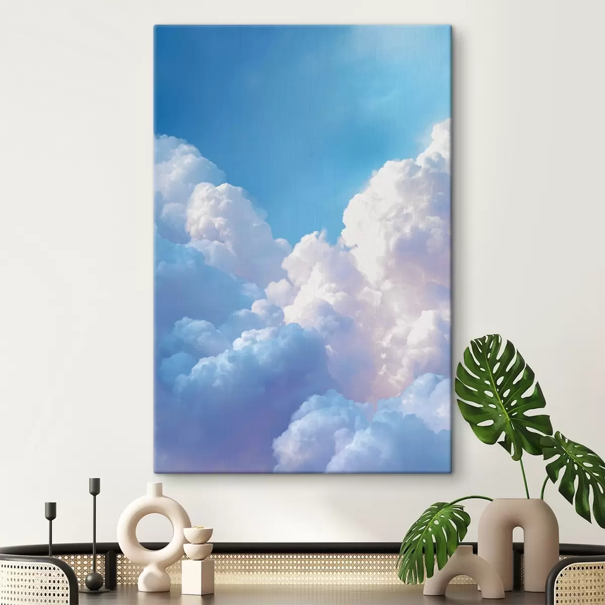 Obraz Malebná obloha s mohutnými bielymi mrakmi v štýle digitálnej grafiky Nr. s47089