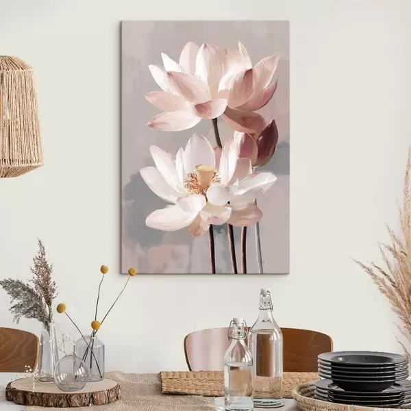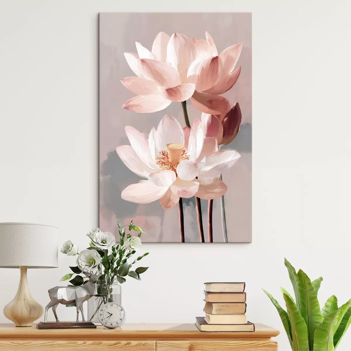 Obraz Jemné ružové lotosy na pastelovom pozadí v modernom maliarskom štýle Nr. s47092