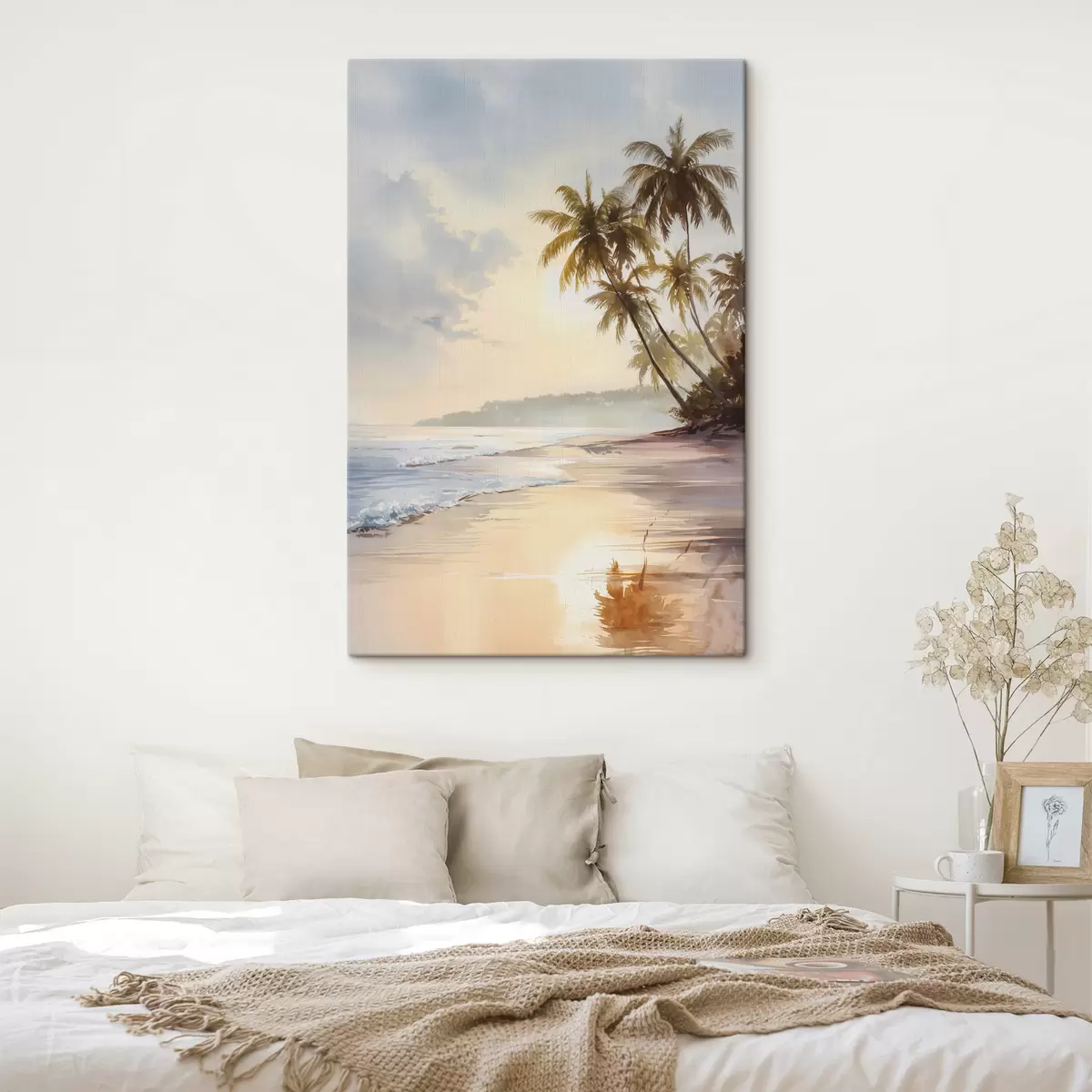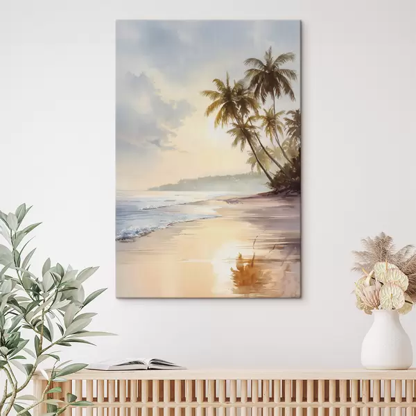 Obraz pláž pri západe slnka na ostrove v akvarelovom štýle Nr. s47135