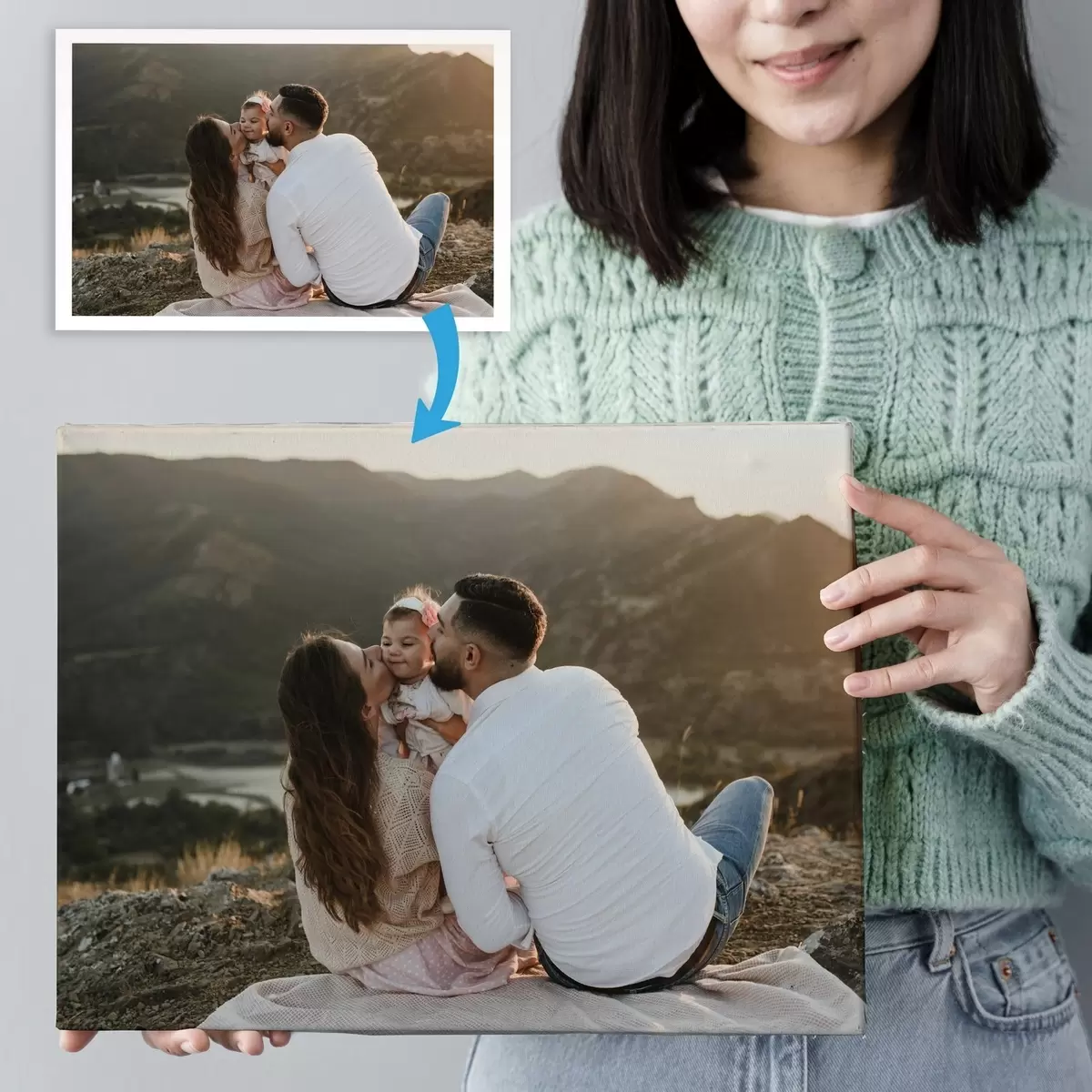 Vašu fotografiu môžeme vytlačiť na plátno alebo plagát. Nahrajte a prispôsobte svoju fotografiu v našom editore za 5 minút.