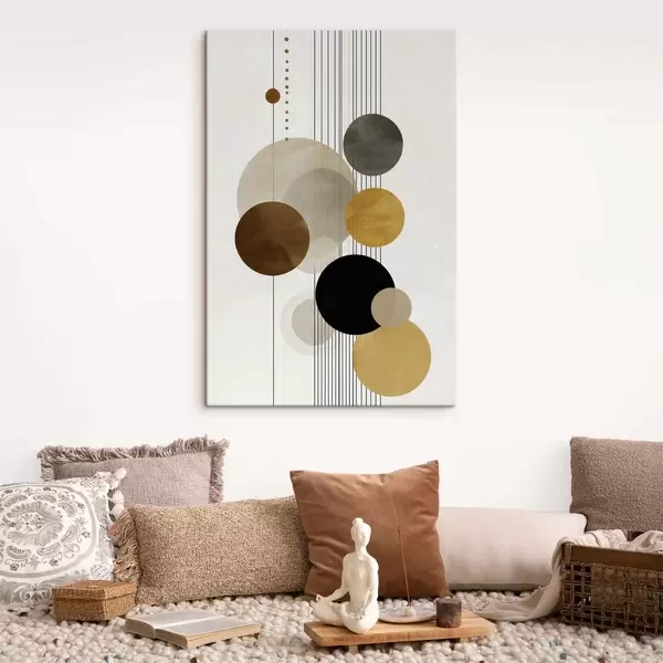 Obraz abstraktné dielo s kruhmi a čiarami v teplých farbách Nr. s47237